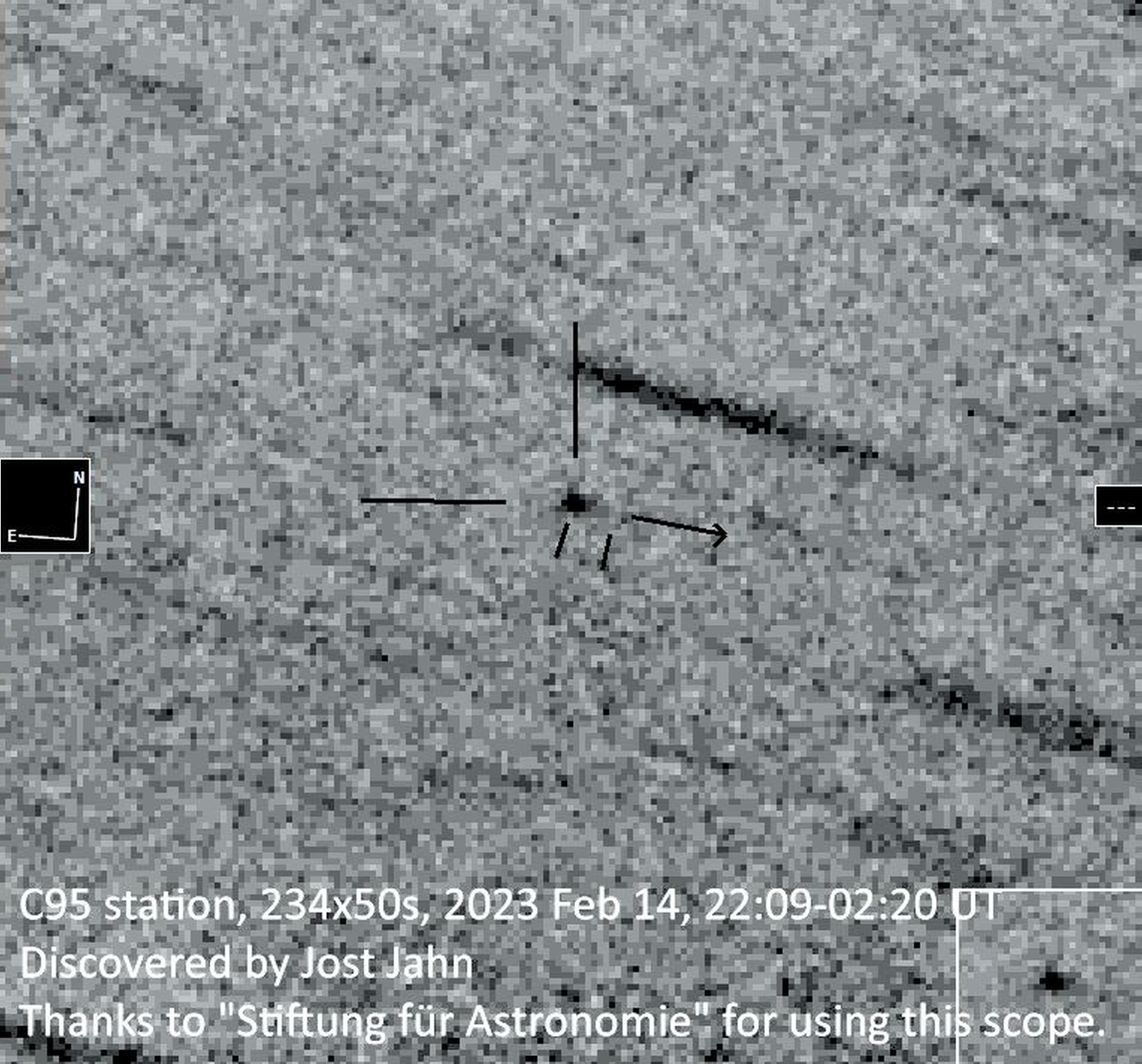 Der bis dahin unbekannte Komet auf den ROTAT-Aufnahmen aus der Nacht vom 14. auf den 15. Februar rutschte der Software hingegen durch. Das Asteroiden-artig erscheinende Objekt, das sich bei genauer Analyse als ein von einer durch Ausgasungen gebildeten Wolke umgebener Komet entpuppte, war Jahn erst bei der persönlichen Sichtung der Bilder am 20. März aufgefallen. „Ich habe durch Zufall ganz am Rande einer Aufnahme einen hellen Punkt entdeckt, der bisher nicht identifiziert worden ist“, sagt er.
