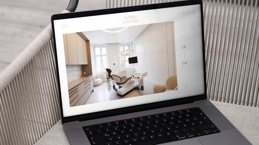 Die Farbigkeit des Logos ist sehr dezent. Urich war es wichtig, kein reines Weiß in der Inneneinrichtung oder bei der Ausstattung zu verwenden, weshalb white cocoon auf gedeckte Töne in Grau-Beige setzt. Von der Visitenkarte über das Briefpapier bis hin zu den Behandlungszimmern strahlt alles eine Wärme aus, die den minimalistischen und ästhetischen Anspruch von Urich vermittelt – ohne das klassisch-sterile Ambiente einer Zahnarztpraxis. Auf Anraten des Marketingteams ließ Urich ihr Logo übrigens als Wort- und Bildmarke eintragen.