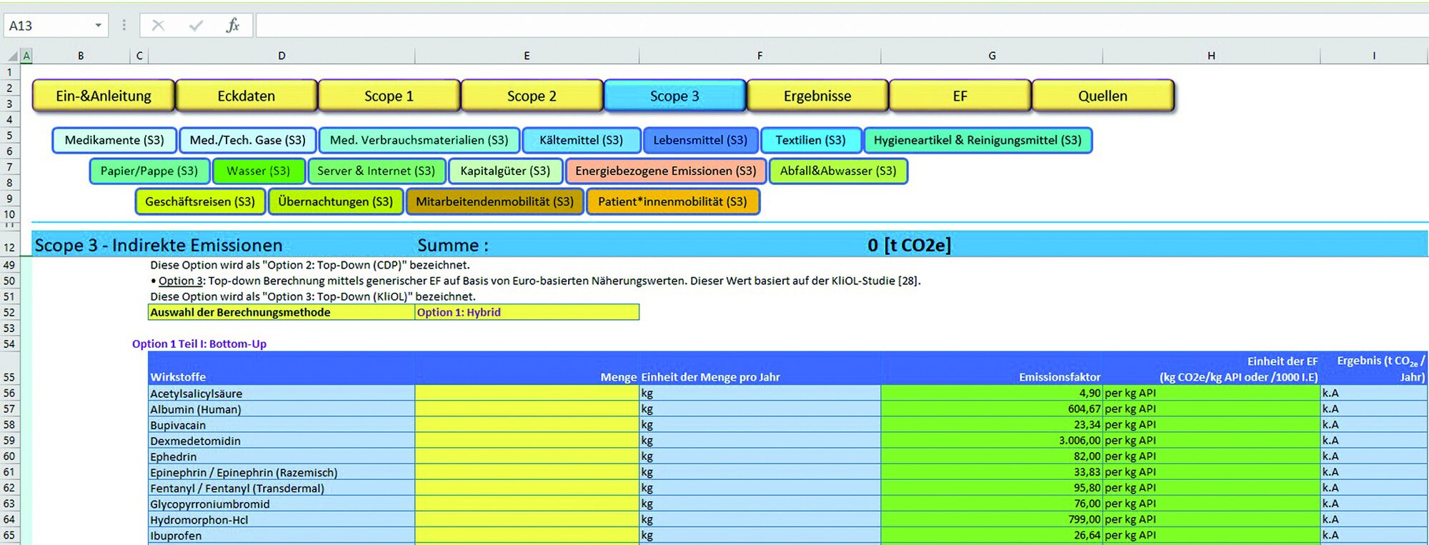 Besonders bei Scope 3 liegen im Gesundheitsbereich jedoch zu wenige Daten vor, sagt Prof. Dr. Andy Maun, Direktor des Instituts für Allgemeinmedizin des Uniklinikums Freiburg und Leiter des sogenannten CAFOGES-Projekts (Carbon Footprint im Gesundheitswesen), das das Excel-Tool entwickelt hat. Und das sei ein gravierendes Problem: Denn der in Scope 3 anfallende Ausstoß klimaschädlicher Treibhausgase mache häufig den Großteil der Emissionen eines Unternehmens aus, und spiele dann in der CO₂-Kalkulation keine oder eine nur geringe Rolle. Hier sei es noch ein weiter Weg zu einer lückenlosen Klimabilanz.