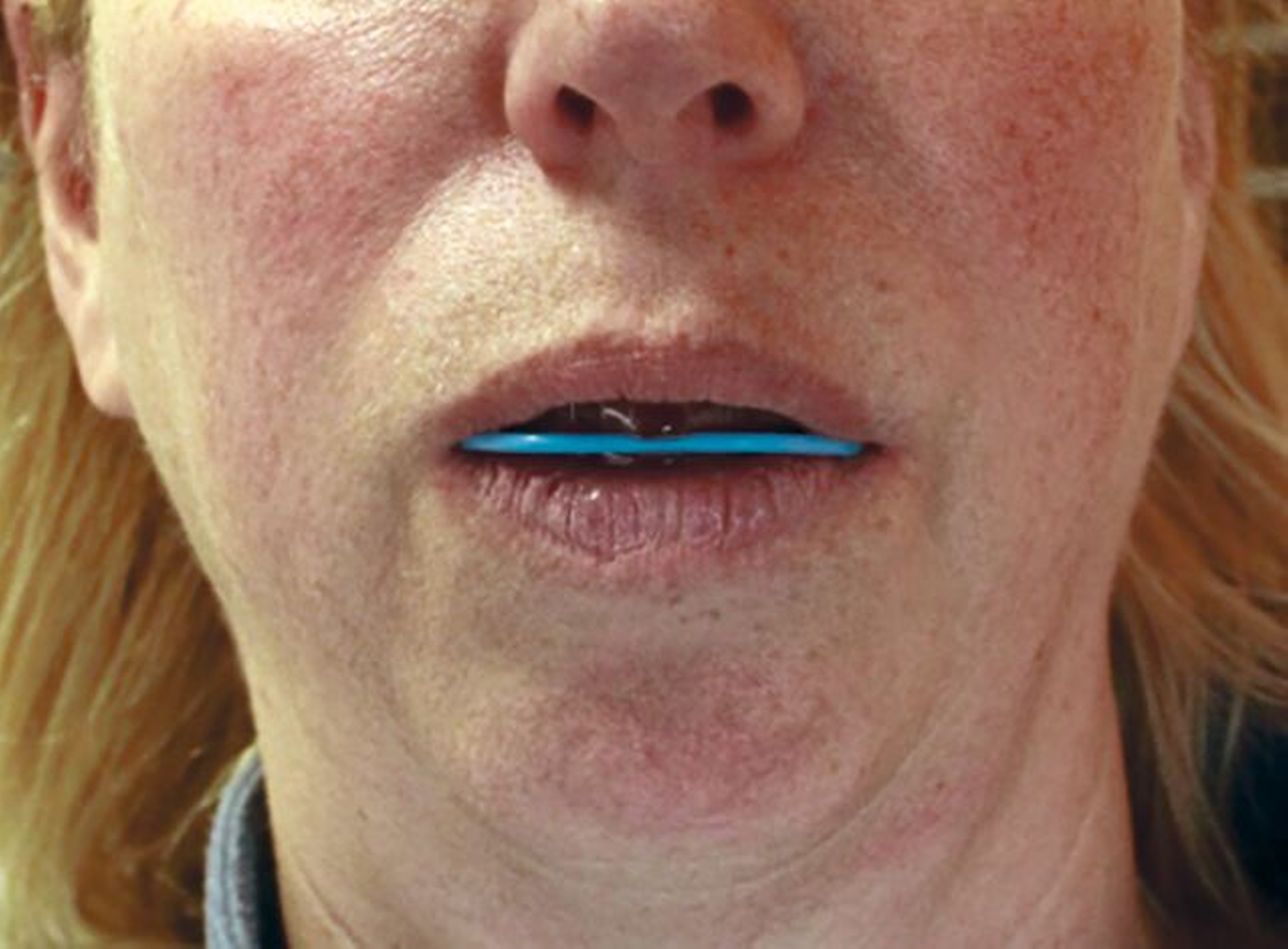 Gleichzeitig nehmen mit zunehmender vertikaler Sperrung zahnmedizinische Nebenwirkungen im Sinne von CMD-ähnlichen Beschwerden oder orthodontischen Nebenwirkungen wie der Proklination der Unterkieferfrontzähne und der Abnahme des Overbite zu, während der Patientenkomfort abnimmt [Sari et al., 2011]. Nebenwirkungen und Komforteinbußen gehen wiederum zulasten der Adhärenz. Eine sorgfältige klinische Untersuchung geht deswegen der Bauart-Wahl und der Bauart-Planung voraus. Dazu gehören die Erfassung der intermaxillären Platzverhältnisse in der protrudierten Kieferstellung genauso wie die der Lippenkompetenz oder der Zungenmorphologie.