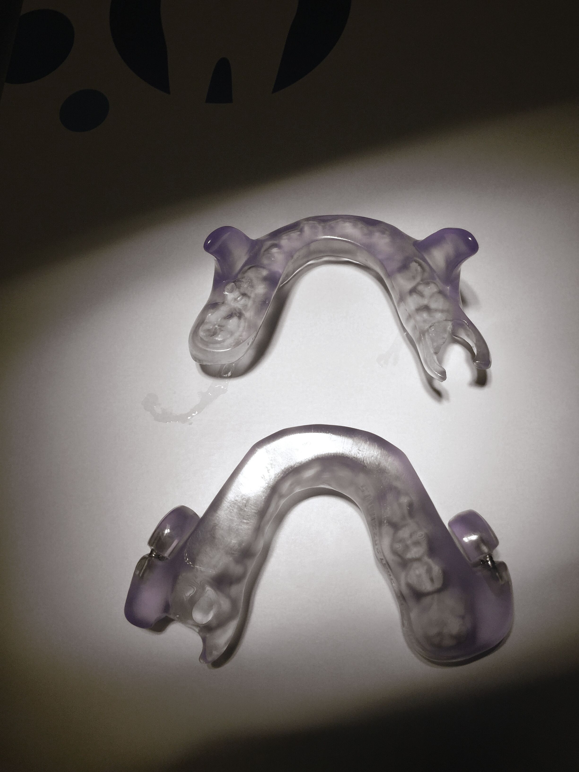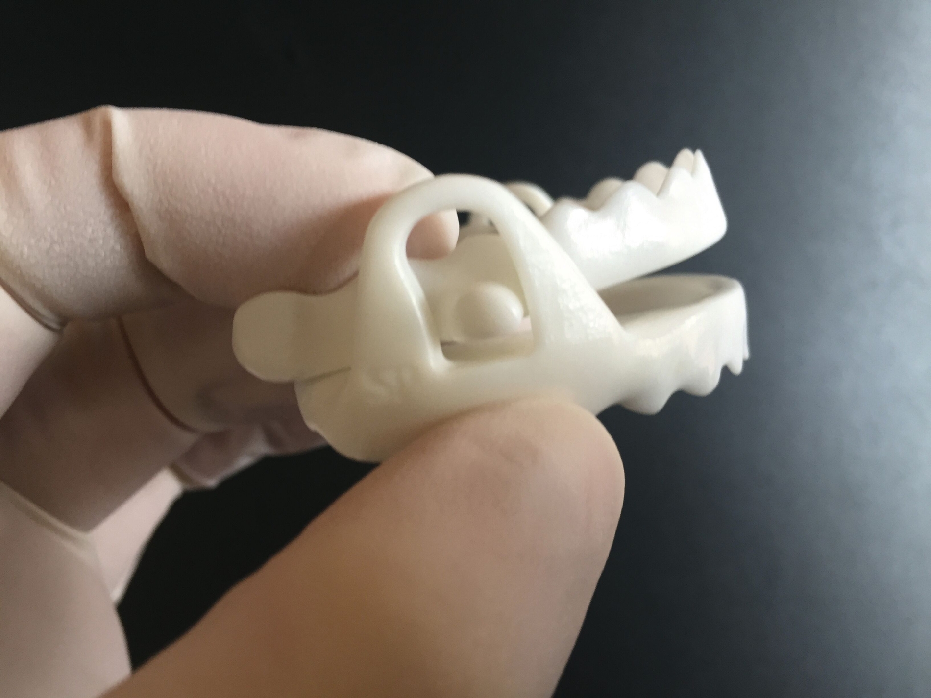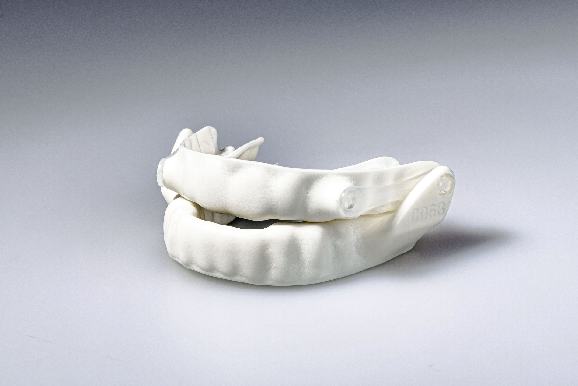Die UPS-Therapie ist eine meist lebenslang konzipierte Therapie [Hamoda, 2018]. Um klinisch wirksam zu sein, muss die UPS regelmäßig über mehrere Stunden Schlafzeit in die Mundhöhle inkorporiert werden [AWMF, 2021]. Im Vergleich zu den aus industriell vorgefertigten Rohlingen gefrästen Werkstücken ist bei gedruckten Medizinprodukten deswegen das Problem möglicher Restmonomeranteile hinsichtlich der Zelltoxizität kritisch zu betrachten und auf die Deklaration des verwendeten Kunststoffs wie auch den Verarbeitungsprozess zu achten. Key Splint Soft® wie bei der F-UPS pt® schneidet hier ähnlich gut ab wie konventionelle Schienenkunststoffe [Guerrero-Gironés et al., 2022; Bieger et al., 2021]. Gefräste Produkte aus Polyamiden (Nylons) wie die Narval CC®-Schiene, die Panthera®-Schienen oder aus anderen MMA-freien Kunststoffen wie beim BioBiteCorrector® sind hingegen frei von Restmonomeren. Bekannte Allergien können ein Argument für eine solche Bauartwahl sein.