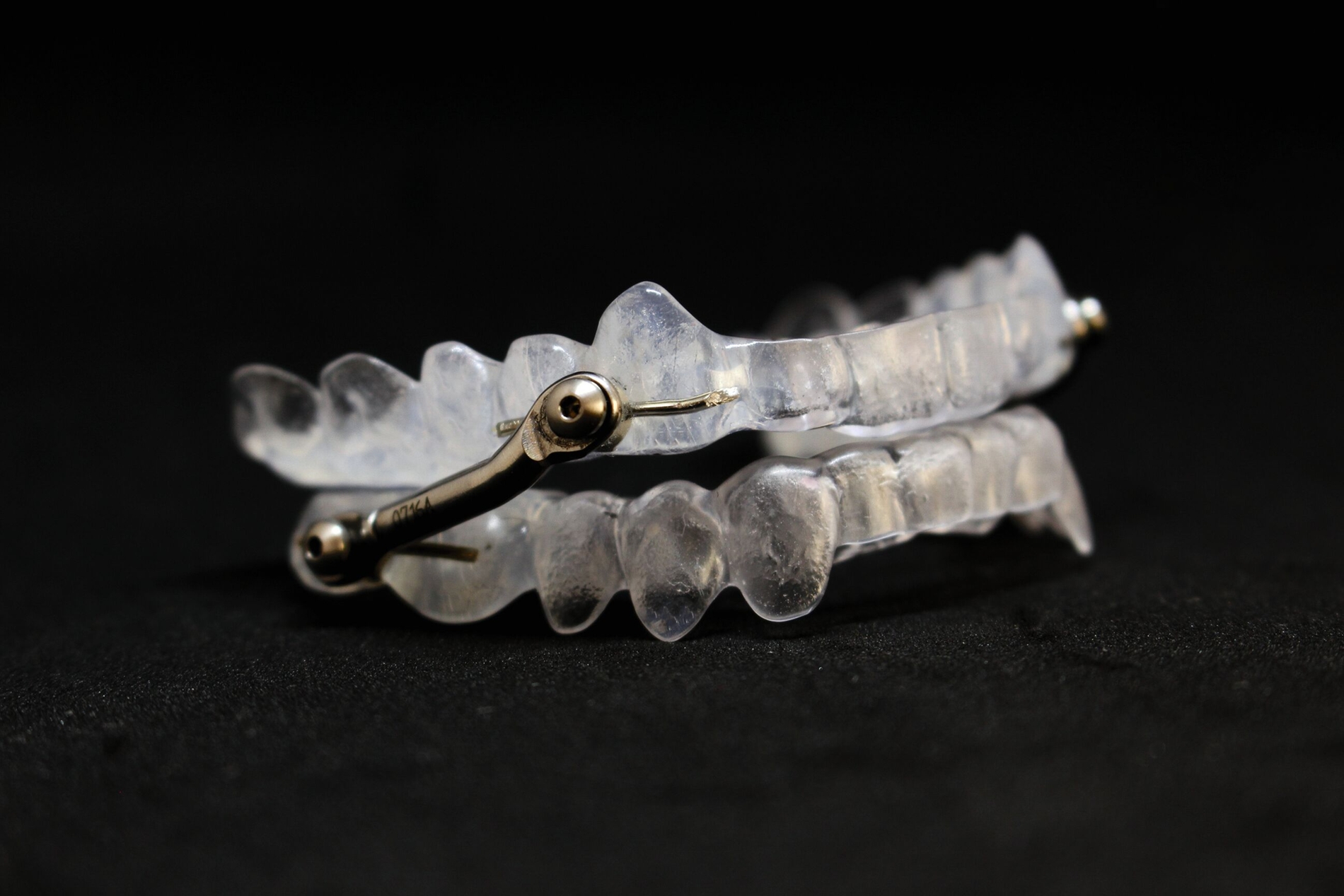 Retention gegen die hohen Abzugskräfte ist eine Schlüsselvoraussetzung für eine schlafmedizinische Wirkungsentfaltung [Vanderveken et al., 2014]. Deswegen muss das Elastizitätsmodul des Basismaterials niedrig genug sein, um die prothetischen Unterschnitte der natürlichen oder künstlichen Zahnkronen zu erreichen. Diese verschiedenen Materialanforderungen bringen Schienen aus herkömmlichen PMMA-Duroplasten gerade in Situationen mit schwierigem Retentionsgewinn – zum Beispiel bei kurzen klinischen Kronen oder reduzierter beziehungsweise ungünstig verteilter Zahnzahl – an technische Grenzen, die auch mit Ergänzung zusätzlicher Retentionselemente wie Knopfankern nicht immer befriedigend und im Sinne des Tragekomforts überwunden werden können. Panthera®-Schienen können in Kombination mit am Zahn anpolymerisierten Composite-Buttons auch ohne Knopfanker ihre Retention verbessern, was jedoch zusätzliche Arbeitsschritte am Patienten notwendig macht.