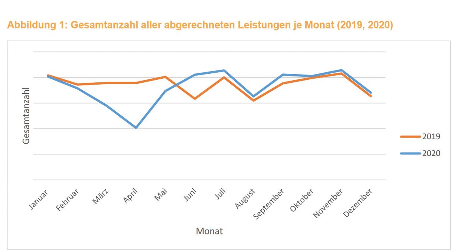 Die Studie geht insbesondere auf den Verlauf über die Monate ein. Um die Veränderung der Inanspruchnahme der Leistungen zu identifizieren, wurden die Daten mit denen des Vorpandemiejahres 2019 verglichen.