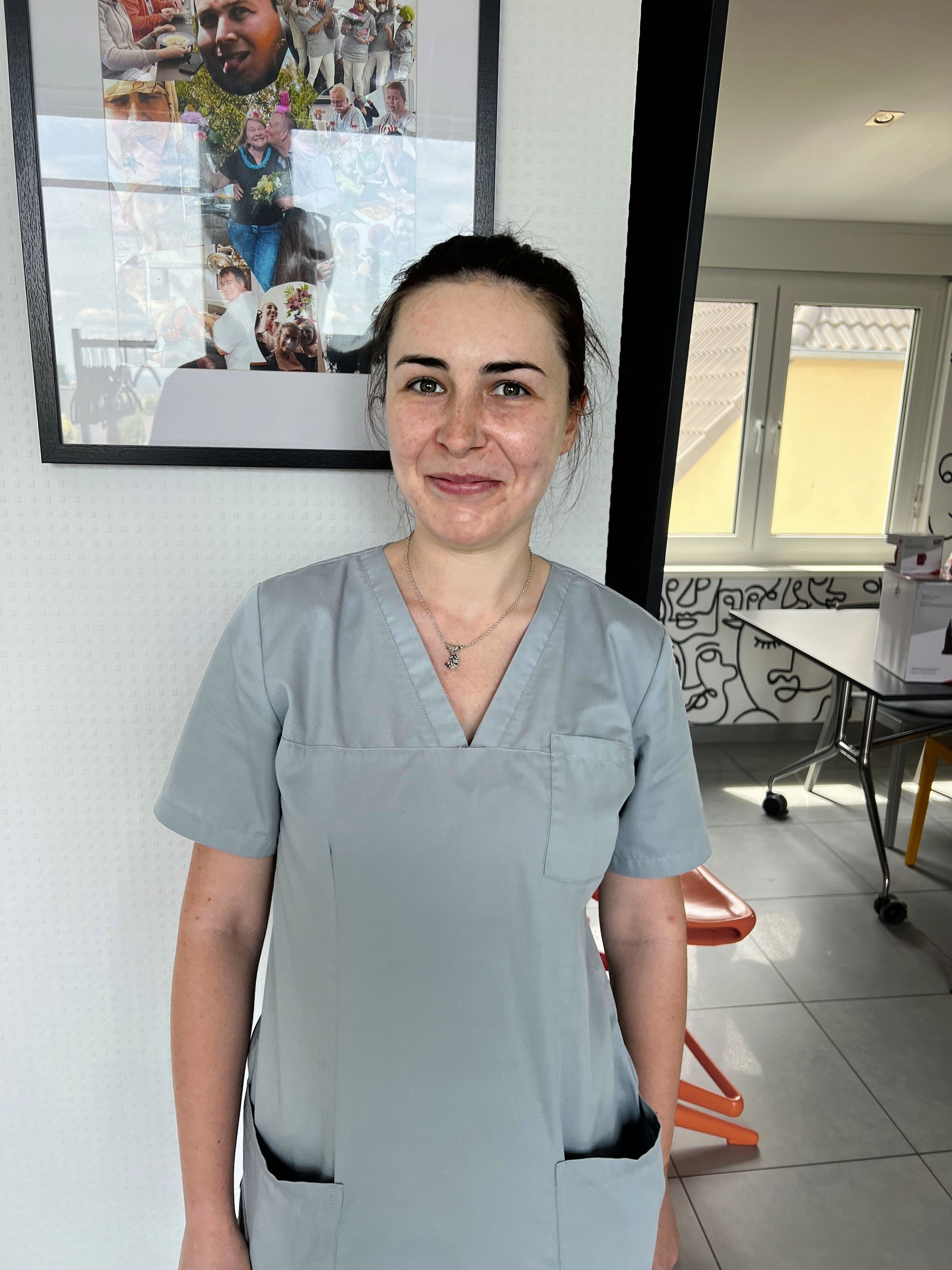 „Ich hatte in der Ukraine gerade mein Studium beendet, als der Krieg ausbrach“, erzählt Khariuk. Auch sie absolvierte zunächst ein Praktikum in der Praxis Zalesski, seit September 2022 unterstützt sie das Team. Genau wie Hanna Kotliarenko, die dritte Ukrainerin im Team, ebenfalls frischgebackene Zahnärztin. Beide wollen nicht mehr zurück in die Heimat, sondern ihre Karriere als Zahnärztin in Deutschland beginnen. „Ich mache einen Deutschkurs und möchte meine Sprache verbessern“, erzählt Khariuk. Ihre Abschlüsse wurden bei der zuständigen Zulassungsbehörde bereits zur Prüfung eingereicht.