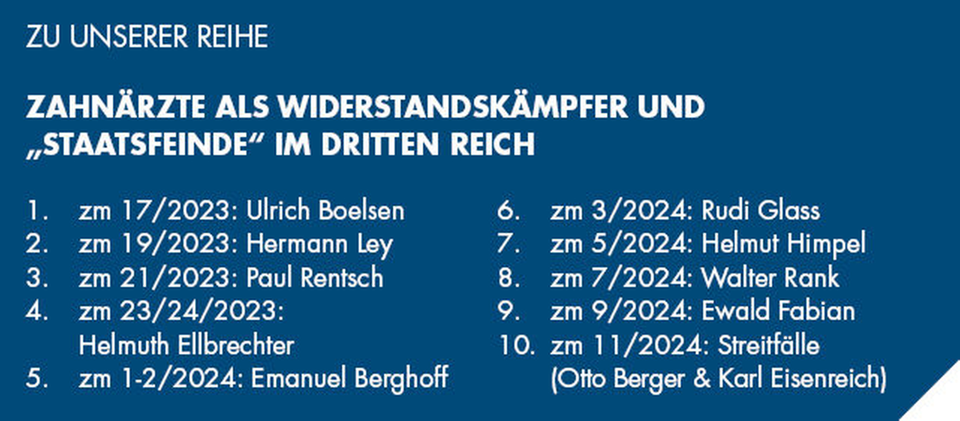 DZB (Deutsches Zahnärzte-Buch) (1932/33), Teil C, 382; (1935), Teil C, 429; (1938), Teil C, 469; (1941), Teil C, 456