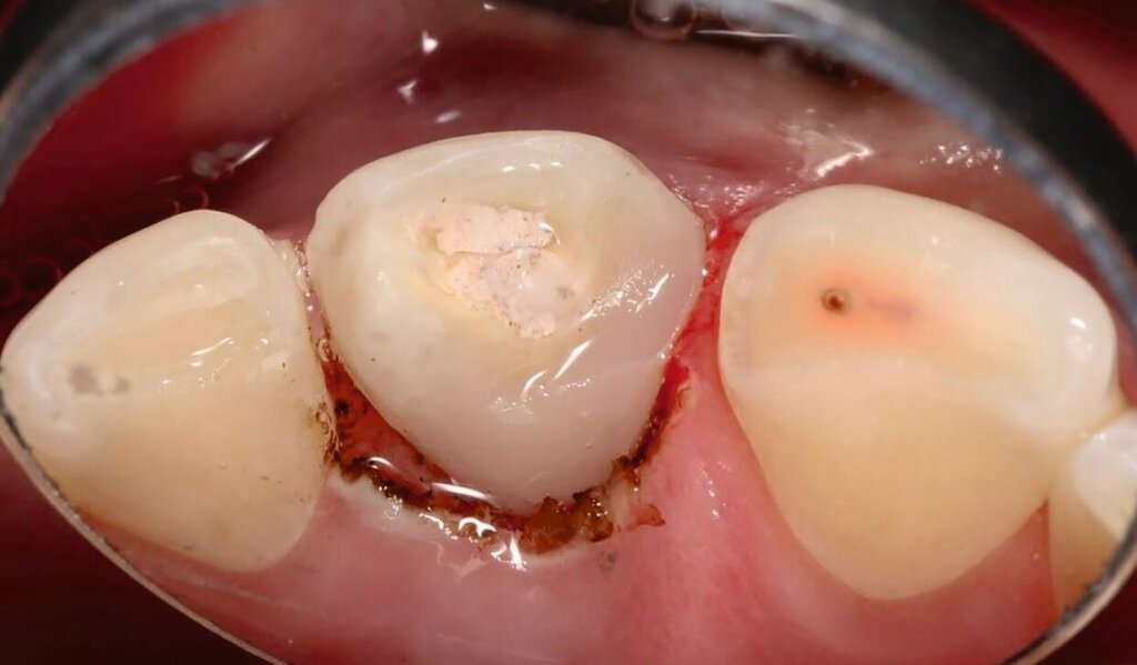 In beiden Fällen wäre eine Sofortimplantation aufgrund von fehlendem vestibulärem Knochen möglicherweise problembehaftet gewesen. Und ein rein adhäsiver Aufbau ohne weitere Maßnahmen wäre in den dargestellten Fällen aufgrund der Verletzung des suprakrestalen Attachments nicht möglich gewesen. Auch ein Platzieren des Restaurationrandes koronal des suprakrestalen Attachments hätte ein ästhetisch insuffizientes Ergebnis nach sich gezogen, stellt aber prinzipiell eine wenig invasive Therapieoption dar.