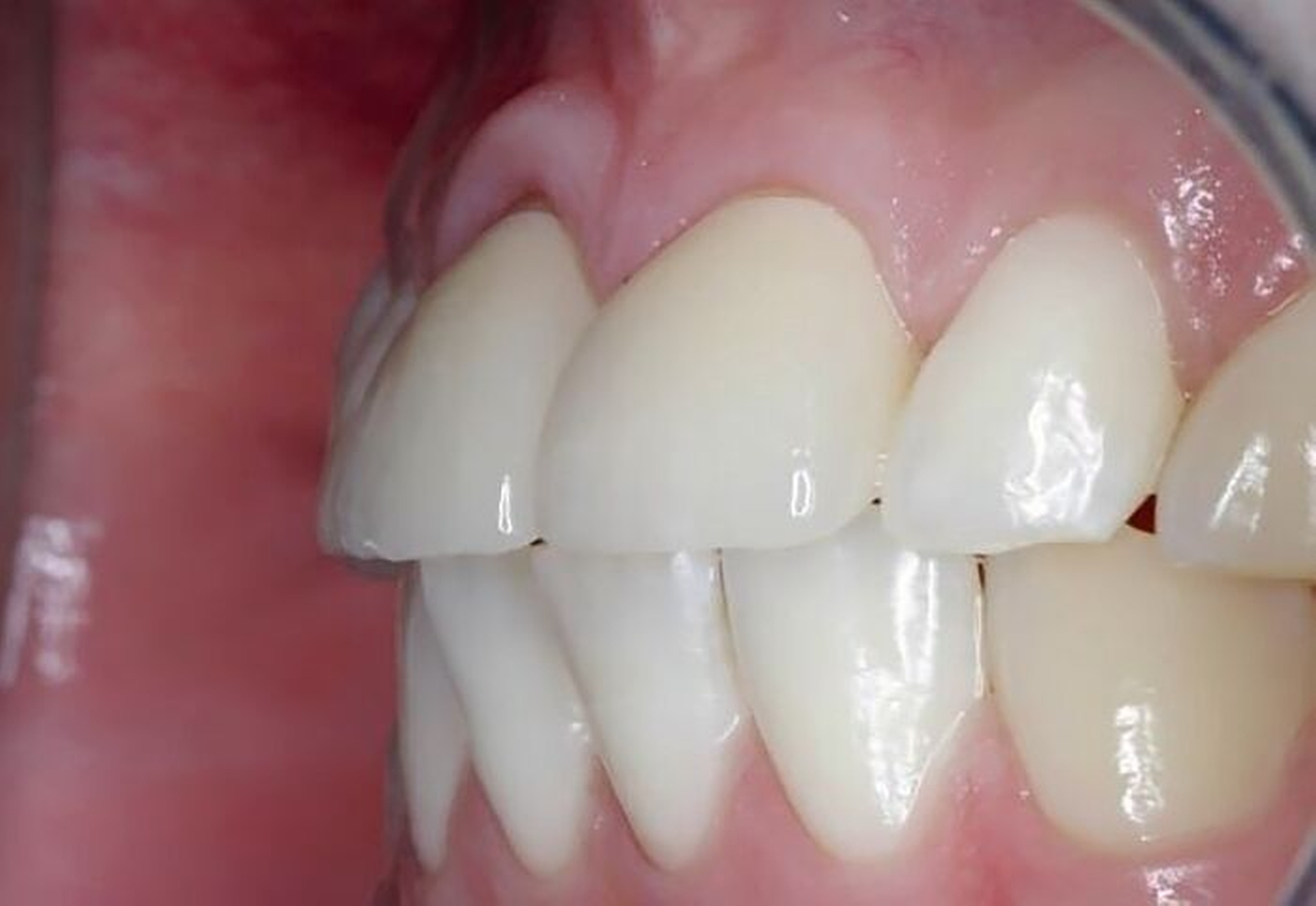 In Fall 1 wurde die schnelle kieferorthopädische Extrusion mittels Segmentbogentechnik vorgenommen. Hier werden höhere Kräfte (50–60 cN) als bei der regulären kieferorthopädischen Bewegung angewandt [Luís et al., 2003]. Dementsprechend belaufen sich die Bewegungszeiten bei der klassischen langsamen kieferorthopädischen Bewegung auf 1 – 2 mm pro Monat und auf 3 – 4 mm pro Monat bei der schnellen kieferorthopädischen Bewegung [Prapas et al., 2008].