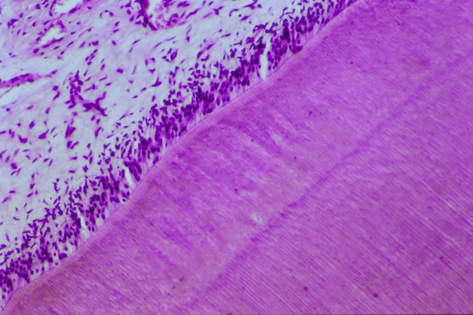 Das ektomesenchymale Endodont ist ein unikaler Odontoblasten-Verbund als Dentinbildner und mechanosensitiver Reizüberträger. Bei einem Untergang der primären Odontoblasten – hauptsächlich durch Karies, Präparationstrauma und chemische Noxen – können sie nie wieder gebildet werden, weil sich auch die Neuralleiste als Quelle ektomesenchymaler ewiger Zellen aufgelöst hat. Der Rest der Pulpa ist ein gewöhnliches Bindegewebe mit den Aufgaben: