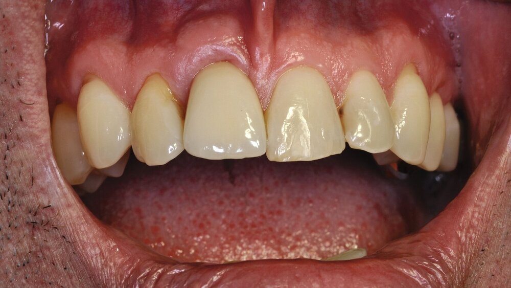 Einer Patientin (*1942) wurden 2011 Titanimplantate in den regiones 35 und 36 inseriert. 2016 zeigten sich erste Hinweise auf eine Entzündung der periimplantären Gewebe an Implantat 35. Zu diesem Zeitpunkt wurden die Bestimmung parodontologischer Markerkeime und lokale antientzündliche Maßnahmen (EMS AIRFLOW, ätherische Parodontitis-Ölmischung) durchgeführt, die eine Progression der Periimplantitis nicht mehr verhindern konnten. 2017 wurden die Explantation und eine histologische Untersuchung des periimplantären Entzündungsgewebes durchgeführt. Das benachbarte Implantat 36 ist über zwölf Jahre bis heute ohne Entzündungszeichen.