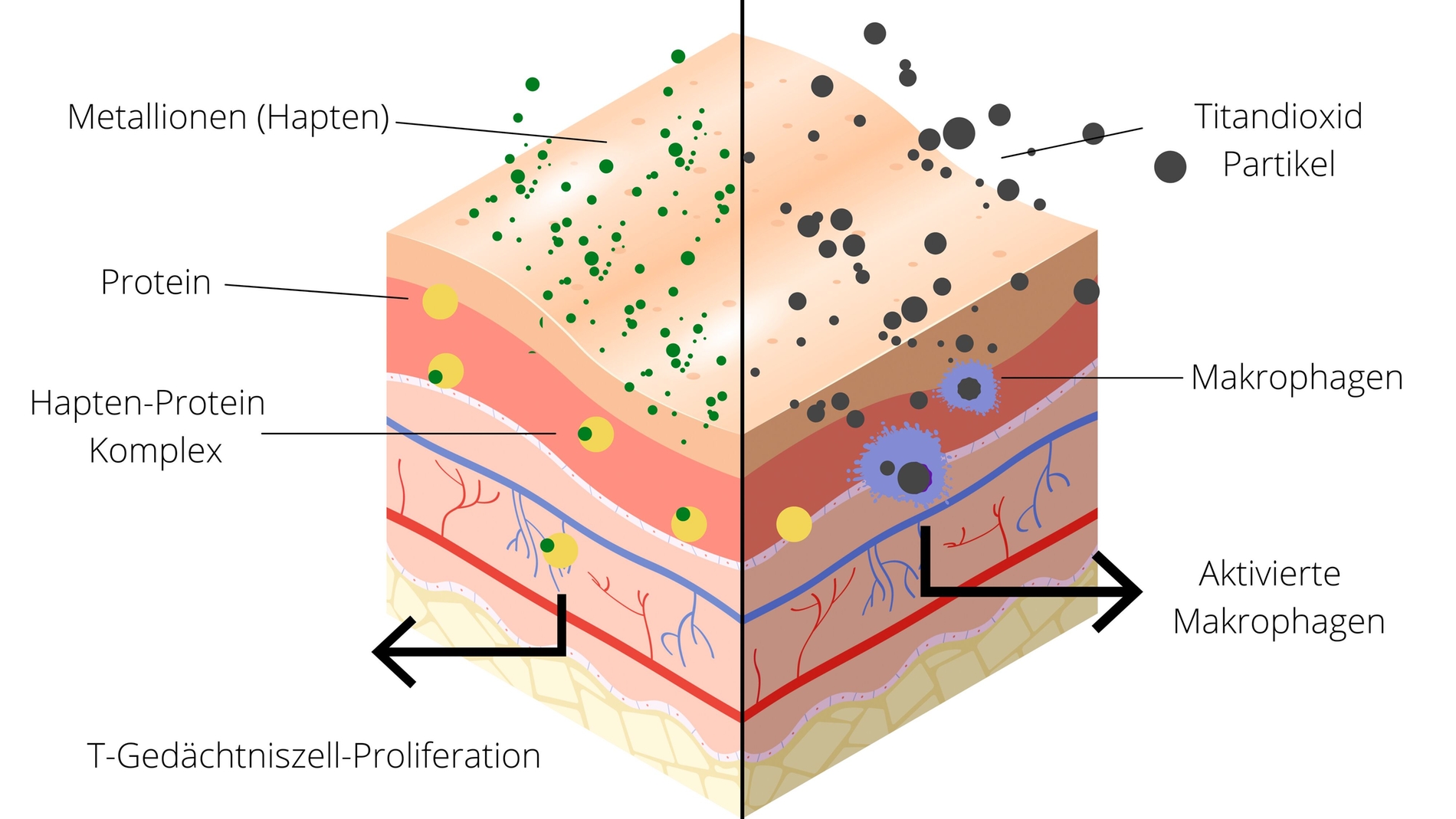 Titanoxid kann nicht als Hapten fungieren und eben aus diesem Grund keine klassische Allergie im engeren Sinn hervorrufen. Eine Ausnahme bilden Titanlegierungen, in denen sich andere Metallkomponenten in der Legierung als Ion präsentieren und direkt Verbindungen mit Proteinen bilden können – in diesem Fall kann sehr wohl allergenes Potenzial entstehen (zum Beispiel Implantate aus Titan Grad 5).