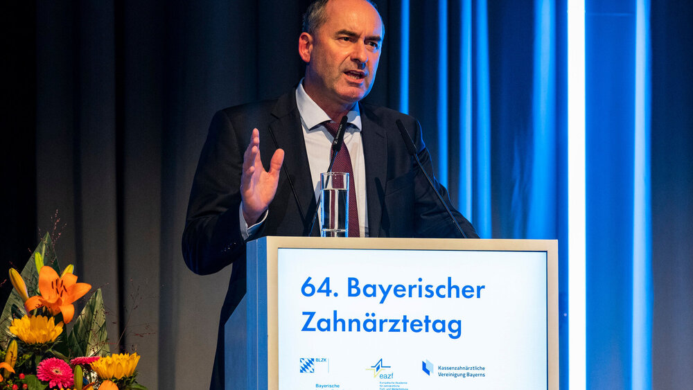 Aiwanger (Freie Wähler) sieht die flächendeckende Versorgung in Bayern in Gefahr – verschärft durch Budgetierung und „die fehlende leistungsgerechte Bezahlung der Ärzteschaft.“ Das hohe medizinische Niveau in Bayern zu halten, müsse aber das Ziel sein. Im Zuge dessen dankte er den bayerischen Zahnärztinnen und Zahnärzten dafür, dass sie hier die wichtige Aufgabe übernehmen.