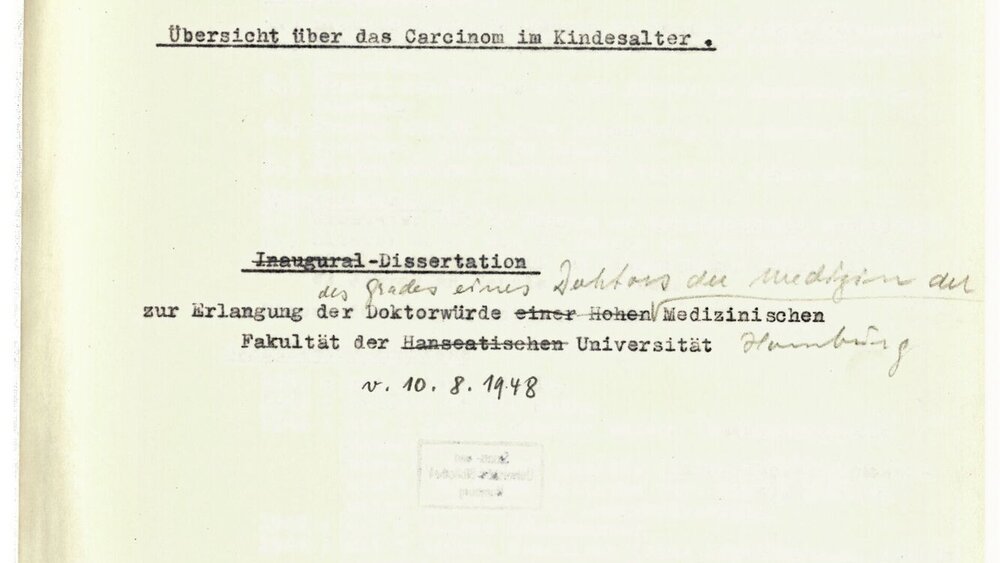 Elbrechter (1948): Hellmuth Elbrechter, Übersicht über das Carcinom im Kindesalter, Diss. Med. Fak. Hamburg 1948