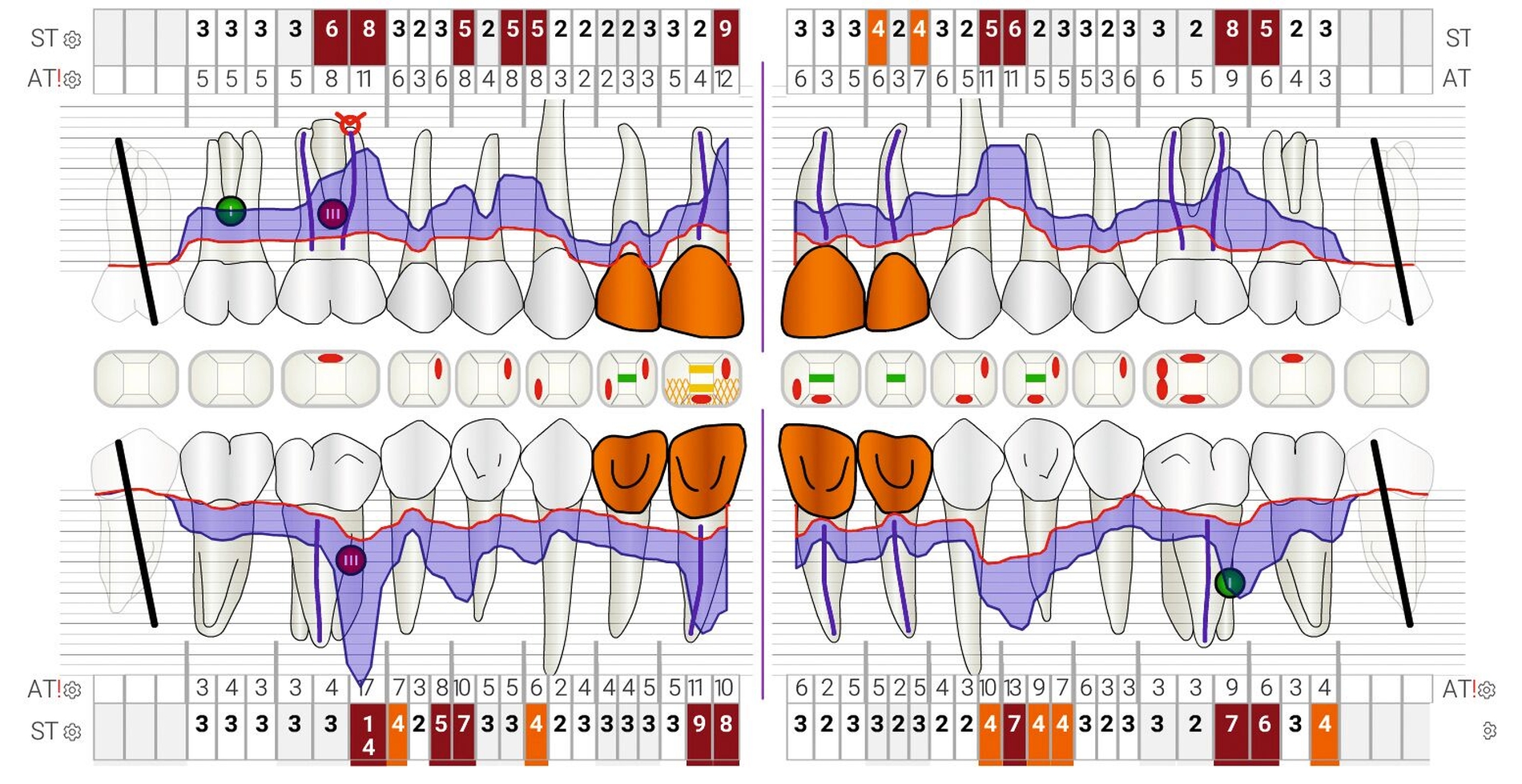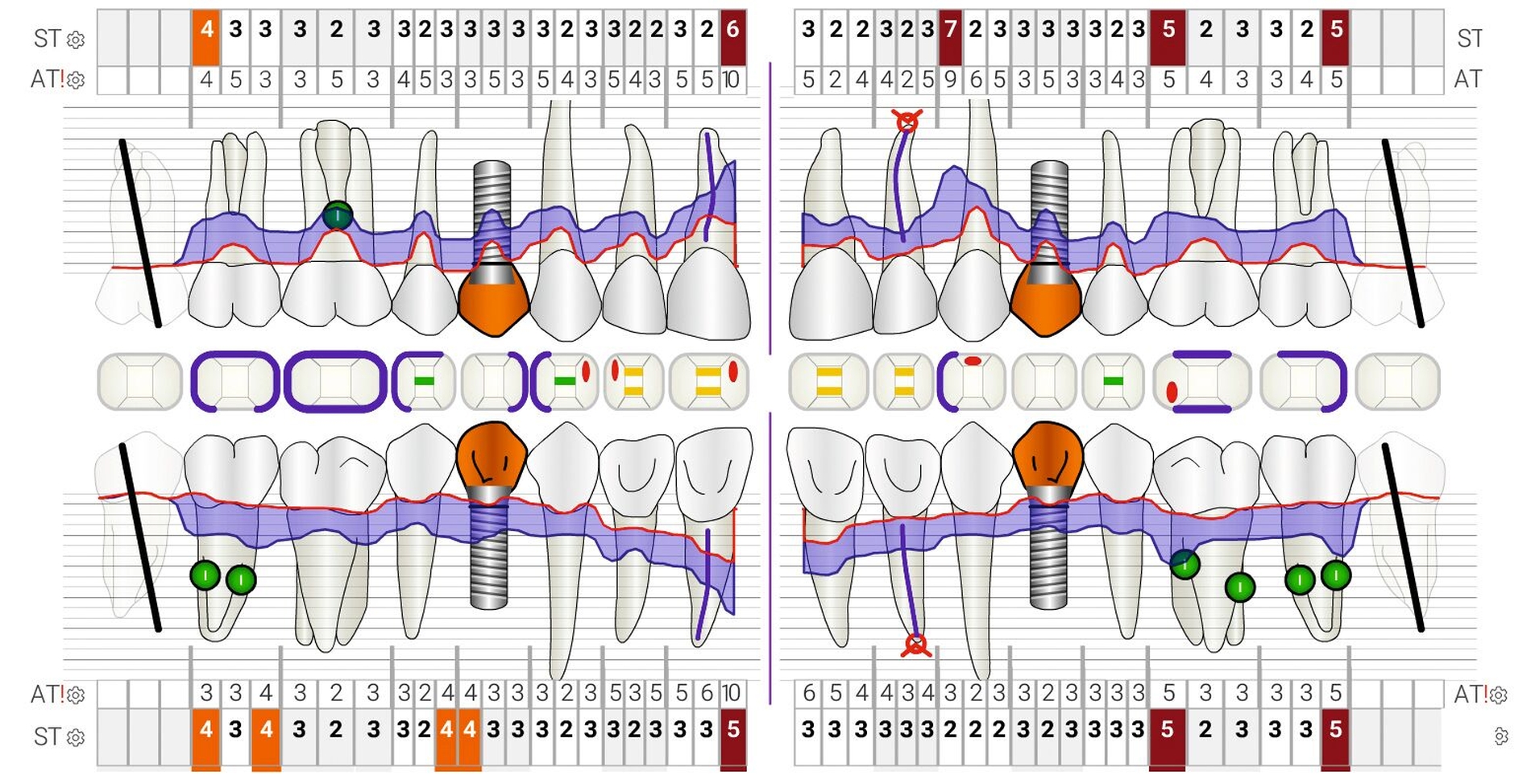 Unterkieferfrontzähne sind mit Abstand die am häufigsten von einer Zahnlockerung betroffenen Zähne, gefolgt von Oberkieferfrontzähnen [Gupta et al., 2023]. Zahnlockerungen von Inzisivi korrelieren mit dem Attachmentlevel und werden vorwiegend bei Patienten mit Parodontitis im Stadium IV festgestellt [Khoo und Watts, 1988; Deng et al., 2022].