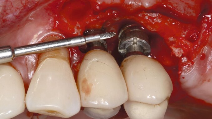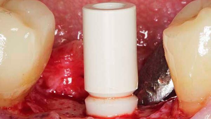 Die Arbeitsgruppe um Jürgen Becker (Universitätsklinikum Düsseldorf) versuchte, diese Fragestellung in einer klinischen Untersuchung zu beantworten. Dafür wurden bei 60 Patienten ein oder mehrere Keramikimplantate eingesetzt. Als Durchmesser kamen 4,5 und 5,0 mm zum Einsatz, während die verwendeten Längen zwischen 9, 11 und 13 mm variierten. Erhielten Patienten mehr als ein Implantat, wurde nur das am weitesten anterior gelegene in die Auswertung einbezogen. Nach der Einheilzeit konnten 52 Implantate prothetisch versorgt werden. Dazu wurde ein Glasfaserabutment adhäsiv im Implantat verankert (Panavia F2.0), diese Situation dann konventionell abgeformt und mit einer Lithiumdisilikatkrone versorgt, die ebenfalls adhäsiv befestigt wurde.