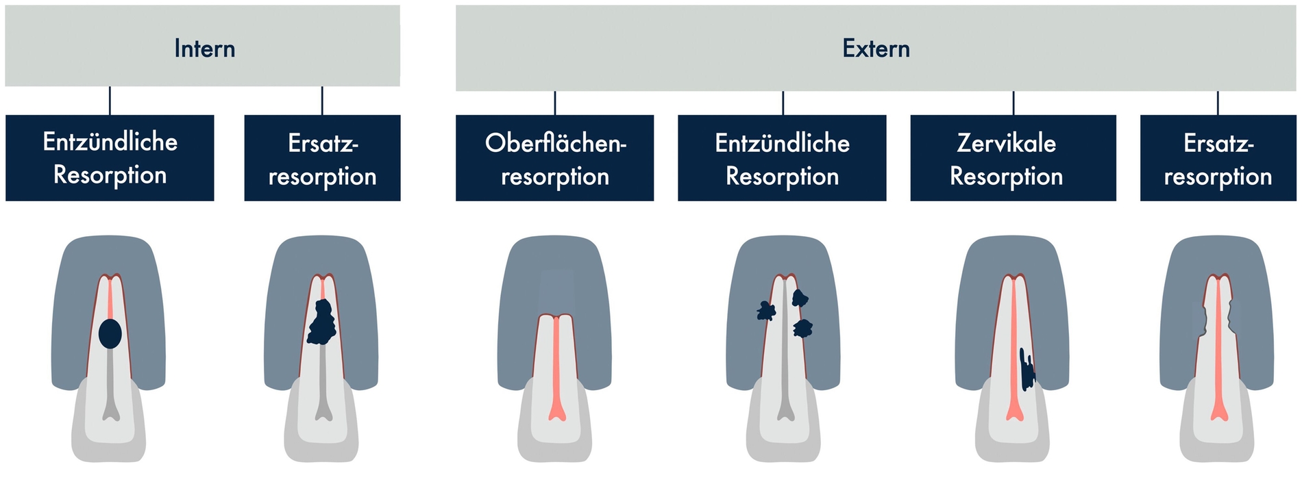 Zahnhartsubstanzdefekte, die durch Resorptionen verursacht werden, werden häufig zufällig bei routinemäßigen zahnärztlichen Untersuchungen entdeckt. Ihr klinisches und röntgenologisches Erscheinungsbild ist äußerst vielfältig, was die genaue Diagnosestellung für Zahnärztinnen und Zahnärzte erschwert. Im Gegensatz zur natürlichen Resorption von Milchzahnwurzeln handelt es sich bei Resorptionsvorgängen an bleibenden Zähnen immer um pathologische Vorgänge, die in der Regel eine therapeutische Intervention erfordern.