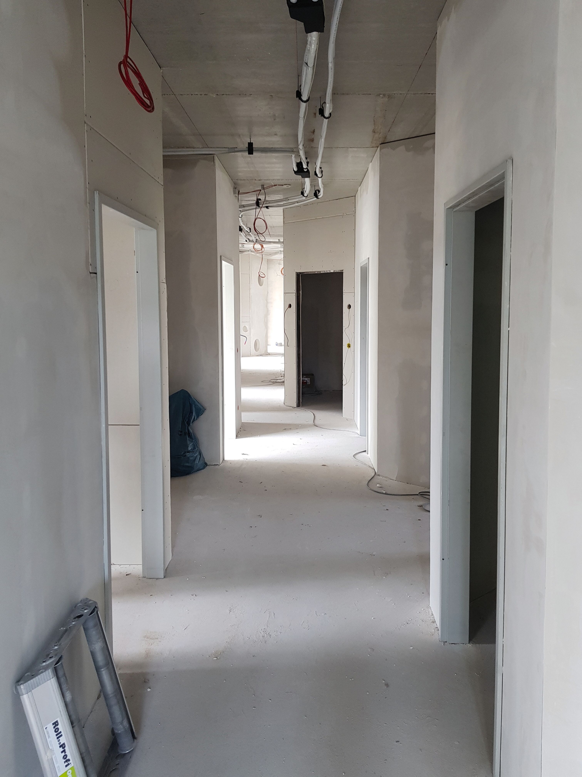Dasselbe gilt für die Fluransicht: Vormals langweilig und kahl entstand hier ein Wohlfühlort – mit denselben Farben und Materialien.