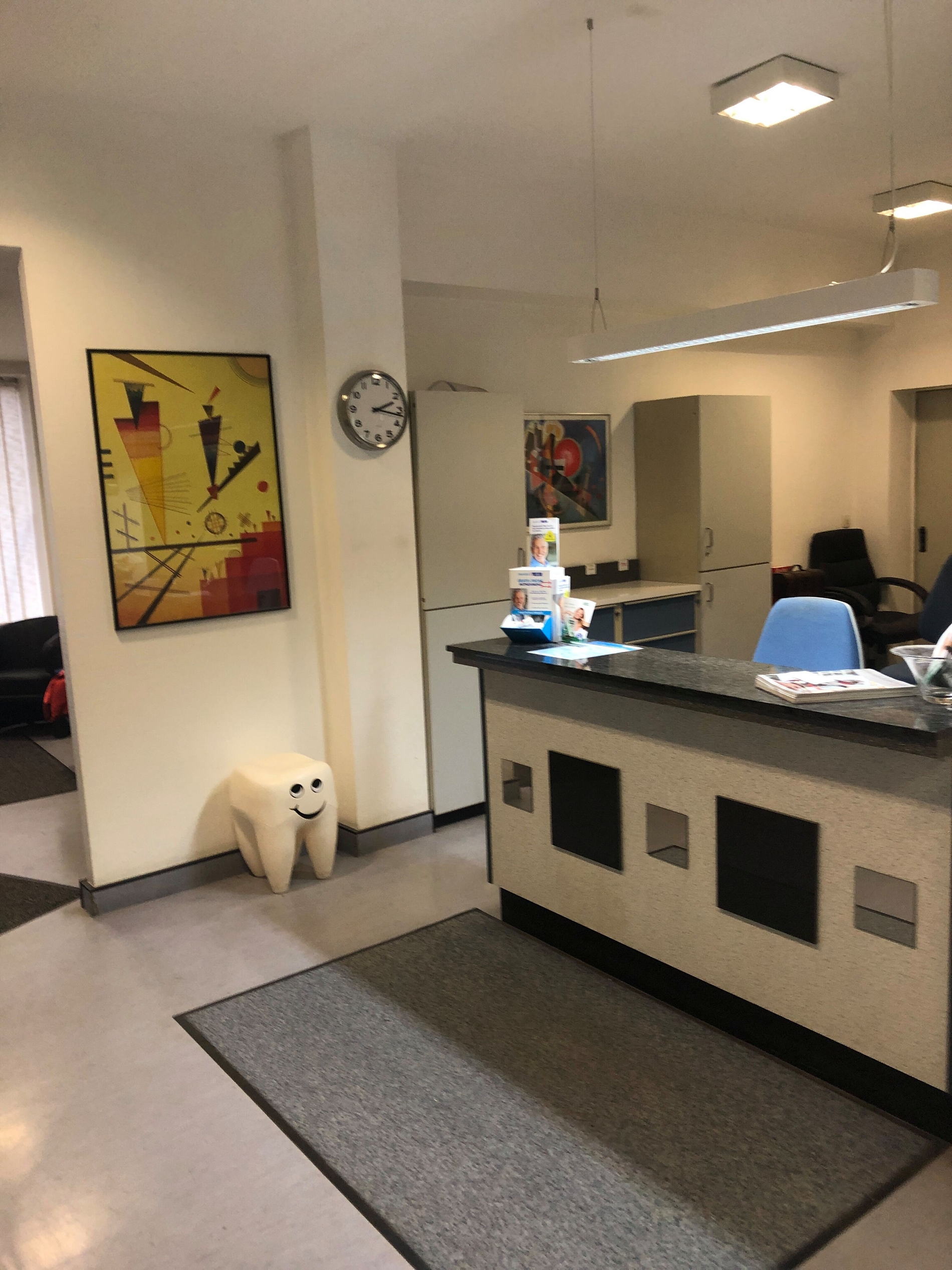 Als Ausgangslage hatten wir hier eine in die Jahre gekommene, alteingesessene Zahnarztpraxis. Der vorige Inhaber ist in den Ruhestand gegangen und hat seine Praxis an Dr. Christine Kirchmann übergeben. Die Räume und die Ausstattung aus den 1980er-Jahren haben wir komplett entkernt: Alles wurde herausgerissen und nach unseren Entwürfen und den Vorstellungen der Übernehmerin neu gemacht.