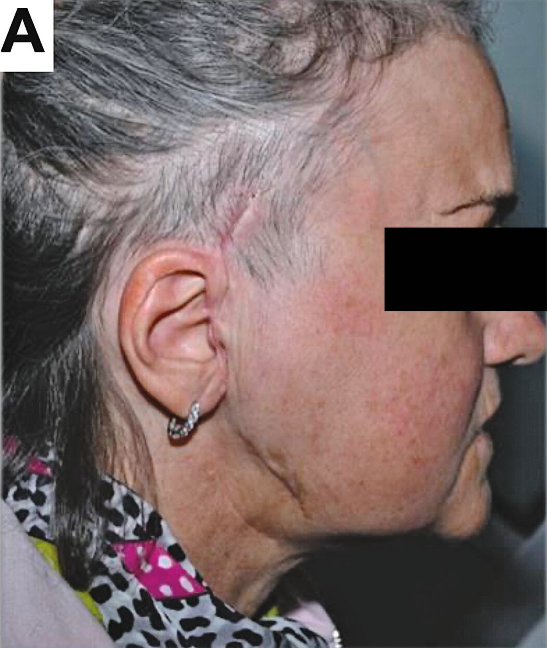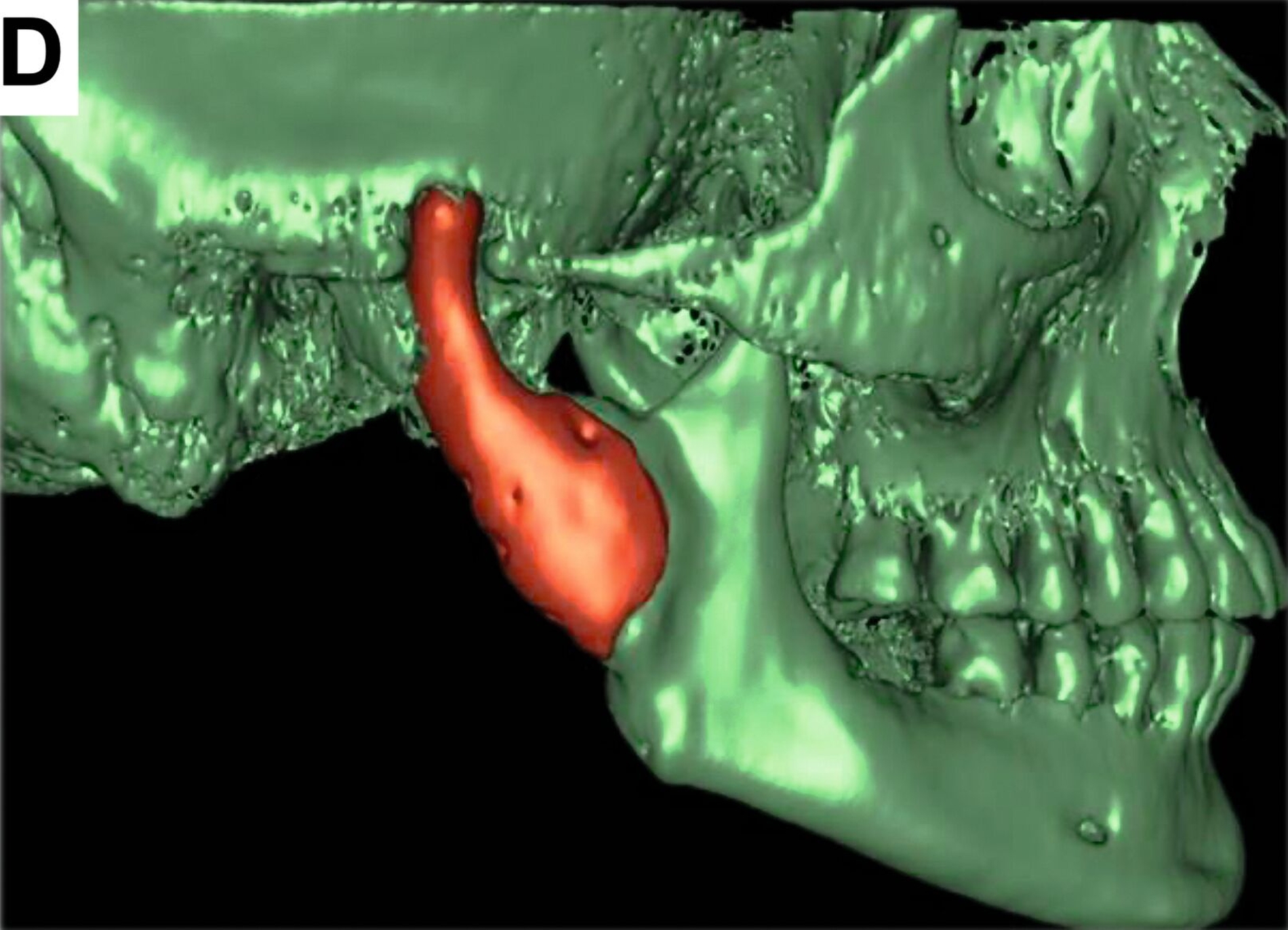 Im September 2022 suchte eine 57-jährige Patientin wegen Beschwerden im rechten Kiefergelenkbereich mit Schmerzausstrahlung in die Temporalregion und eingeschränkter Mundöffnung die Ambulanz der Klinik und Poliklinik für Mund-, Kiefer- und Gesichtschirurgie auf. Die Anamnese ergab eine mehrjährige Krankengeschichte mit mehreren Voroperationen aufgrund eines ossifizierten chrondomyxoiden Fibroms im rechten Kiefergelenk.