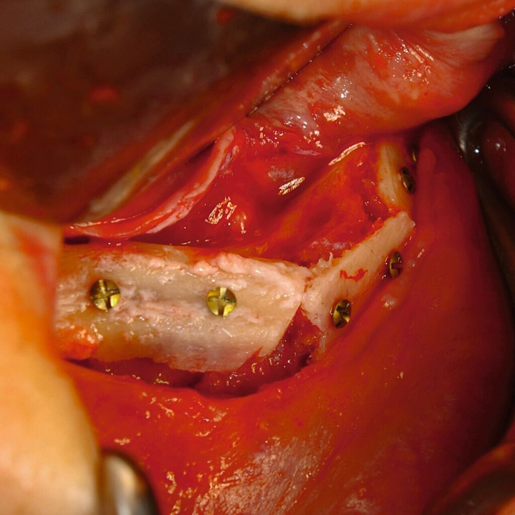 Für chirurgisch tätige Kollegen und Kolleginnen genügen zum Wiederaufbau des Lagers bei ossären Defiziten oftmals ausreichend groß gewonnene Kieferwinkeltransplantatlamellen. Besteht der Kieferwinkel jedoch selbst nur noch aus einer dünnen Lamelle, ist das Verfahren nicht anwendbar.