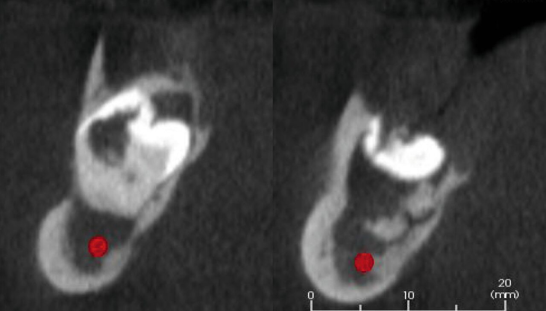 Zweidimensionale Panoramaschichtaufnahmen geben nicht nur in Bezug auf die Breite, sondern auch in Bezug auf die Höhe keine zuverlässige Auskunft über das Rest-Knochenangebot.