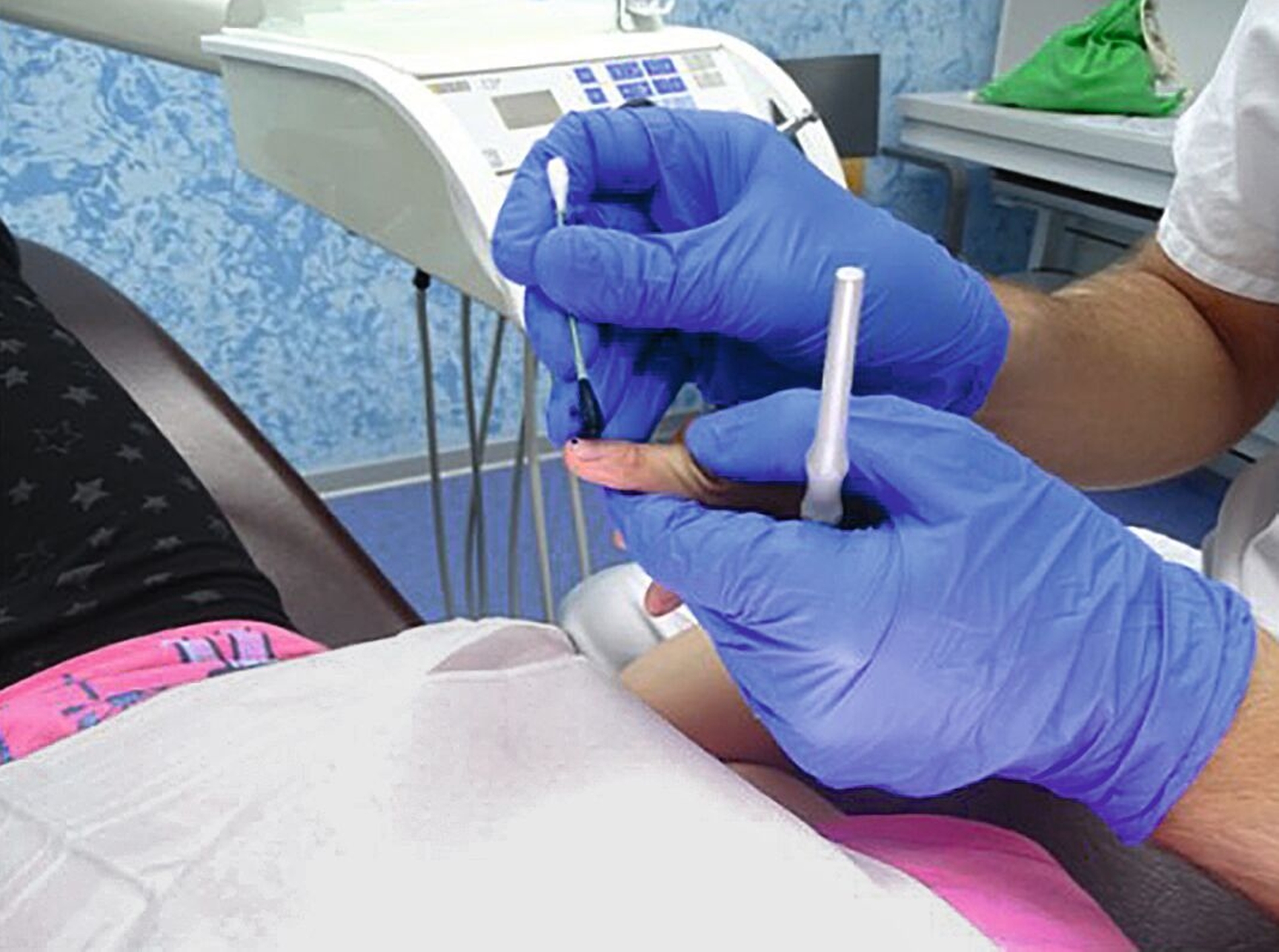 2. Show: Der Behandler zeigt dem Kind das Instrument und demonstriert beispielsweise an einem Finger(nagel), wie es genutzt wird oder funktionieren kann (Abbildung 2a).