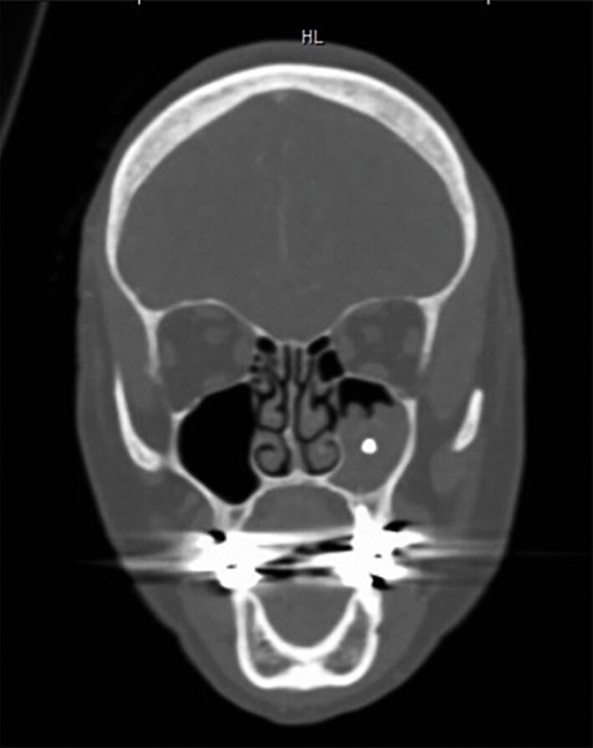 Eine 69-jährige Patientin stellte sich im März 2020 erstmals in der HNO-Abteilung der Uniklinik in Gießen vor. Sie war fünf Tage zuvor aufgrund eines Schlaganfalls in der Stroke Unit stationär behandelt worden, dabei hatte die bildgebende Diagnostik den Zufallsbefund einer Pilzsinusitis in der linken Kieferhöhle ergeben. Die Vorstellung erfolgte zur weiteren Abklärung und möglichen Therapieplanung.
