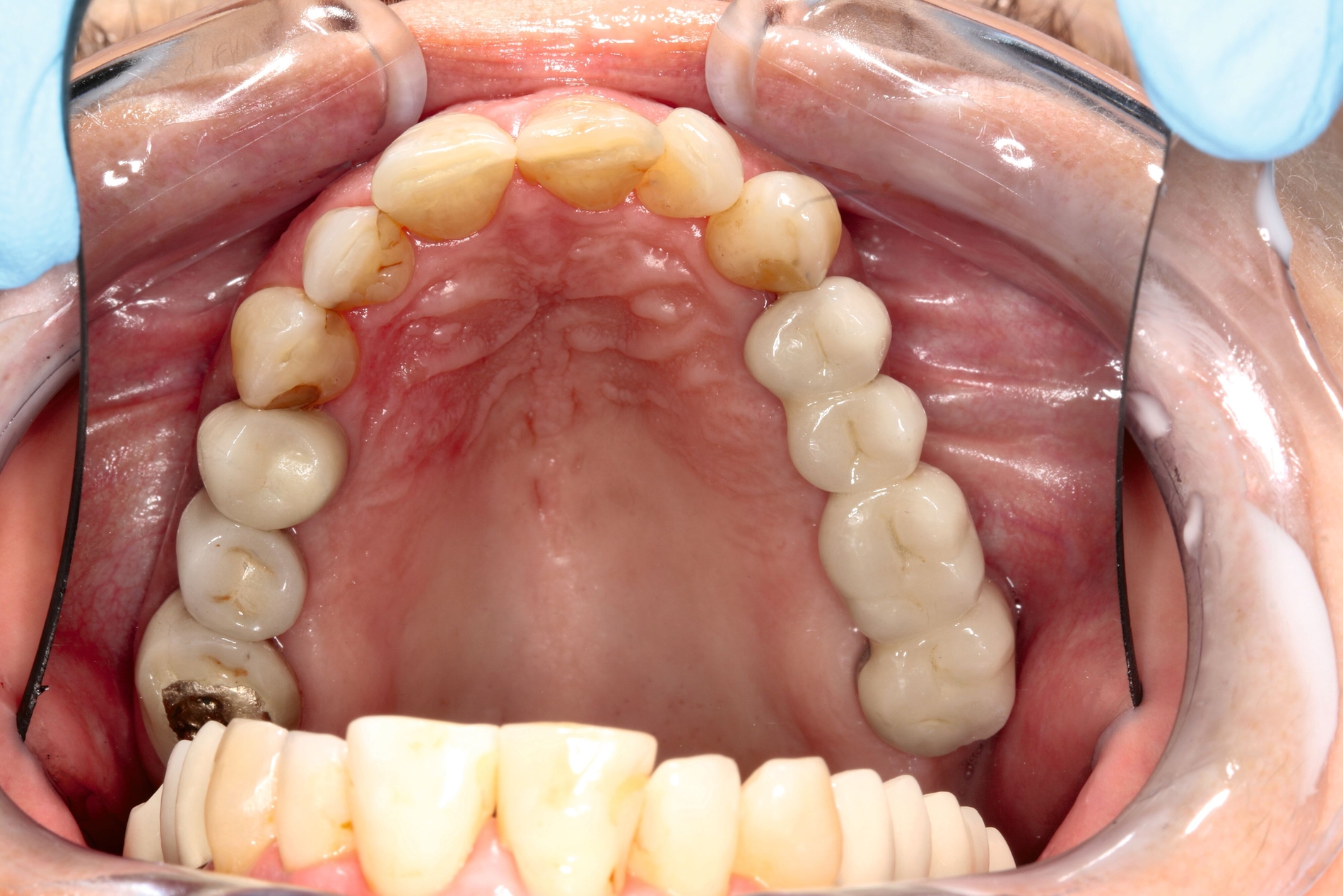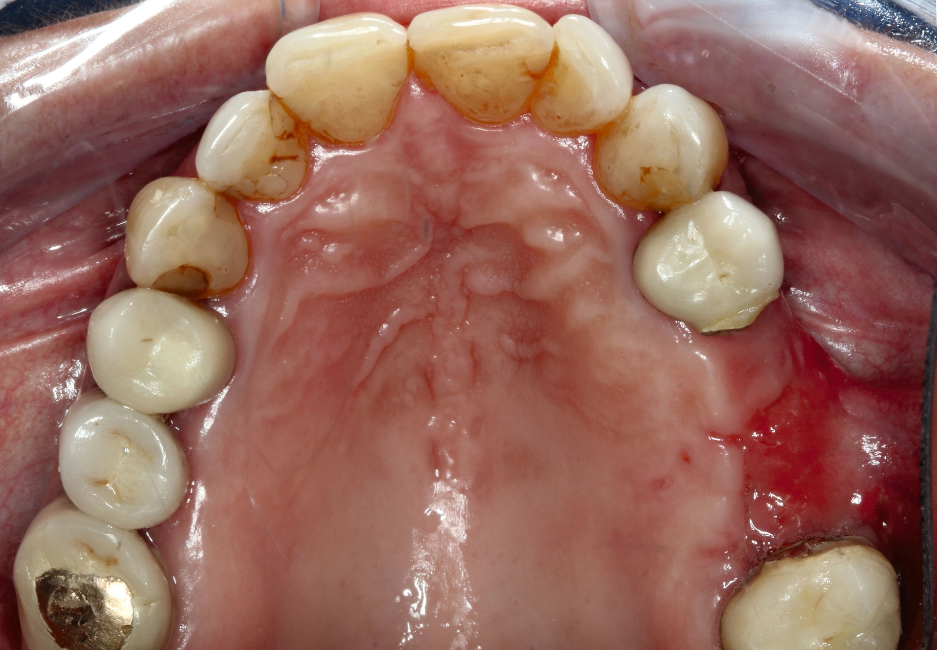 Im weiteren Verlauf wurde die Kieferhöhle durch die Easy-flow-Drainage mehrmals gespült, bis sich klares Sekret über die Nase entleerte. Eine endoskopische Untersuchung der Nase zeigte keine Anzeichen für Pilzreste (Abbildung 4). Unter diesen Umständen konnte der plastische Verschluss der Mund-Antrum-Fistel durch eine Rehrmann-Plastik erfolgen. Die weiteren Kontrollen zeigten einen regelhaften Verlauf der Wundheilung, so dass der Patientin empfohlen werden konnte, eine prothetische Versorgung im zweiten Quadranten durchführen zu lassen.