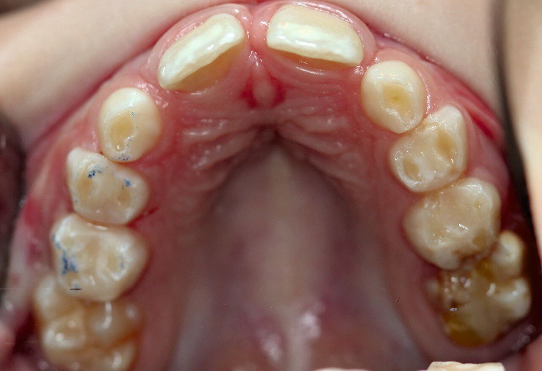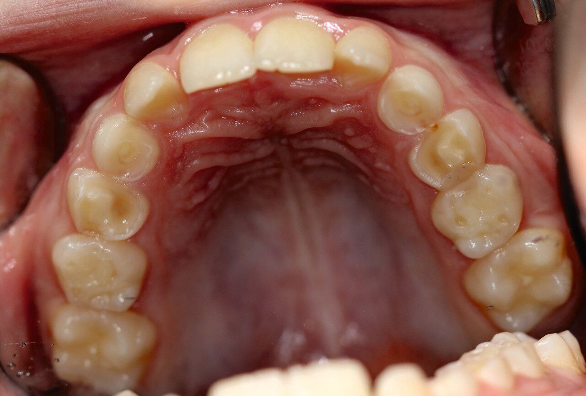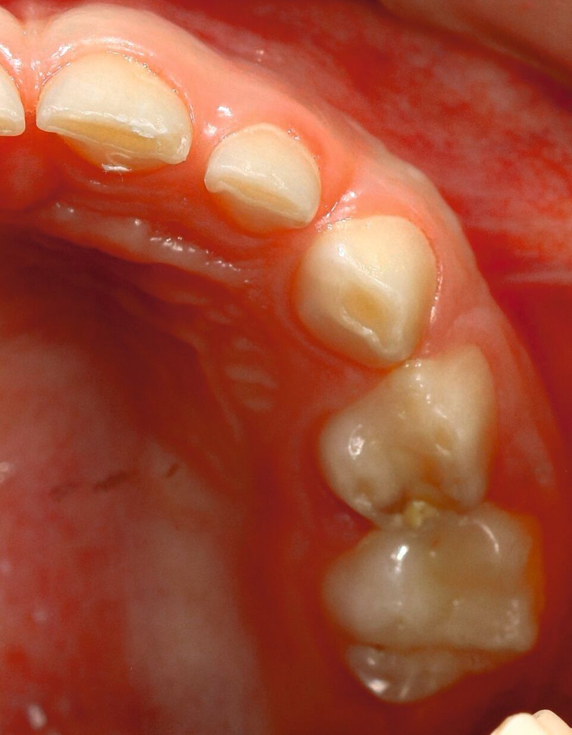 Wenn der Patient nach dem Schlafen über Beschwerden in der Kaumuskulatur oder Beeinträchtigungen im täglichen Leben klagt, handelt es sich um eine schwerwiegende statische Form. Über die Beurteilung der Schlifffacetten an den Front- und Seitenzähnen wird die Diagnose der dynamischen Form erhoben. Diese kann entweder an Studienmodellen oder direkt im Mund erfolgen. Der Schweregrad der Attritionen reicht von der alleinigen Schmelz- bis zur Pulpabeteiligung. Schließlich muss man Zahnhartsubstanzverlust, der bis ins Dentin reicht, bei Kindern und Jugendlichen als schwere Form des Bruxismus bewerten, da die Zähne vergleichsweise kurz in der Mundhöhle sind (Abbildungen 3 und 4).