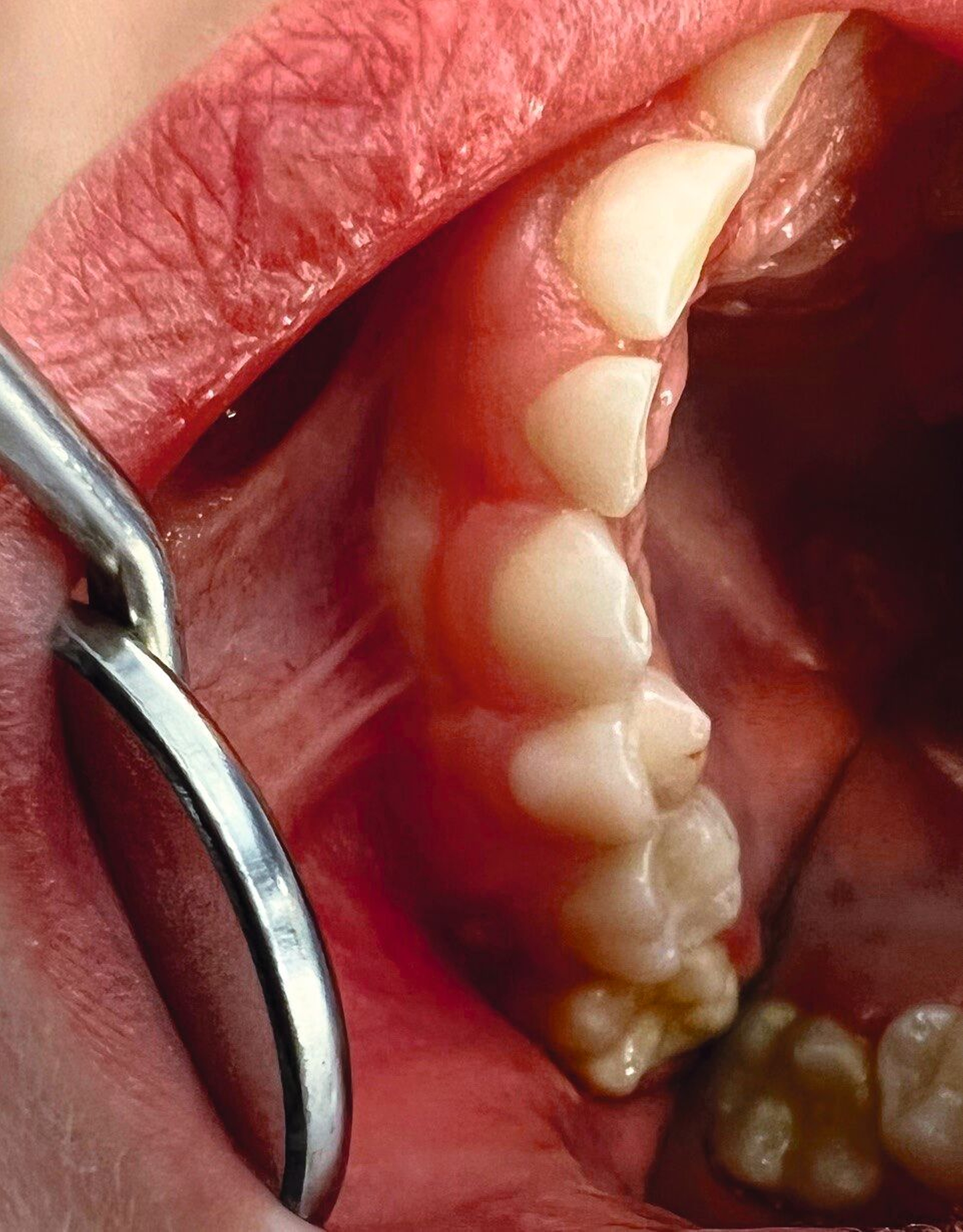 Nicht zuletzt können auch morphologische Gegebenheiten eine ausschlaggebende Rolle in Bezug auf Bruxismus spielen. So können gewisse Zahn- und Kieferfehlstellungen Attritionen fördern, wie dies zum Beispiel beim Kopf- oder Deckbiss der Fall ist (Abbildung 5), während andererseits große vertikale Abweichungen oder sagittale Stufen selten zu klinischen Bruxismuszeichen führen, weil die Zähne nicht in Okklusion stehen. Dies ist meist recht einfach zu diagnostizieren.