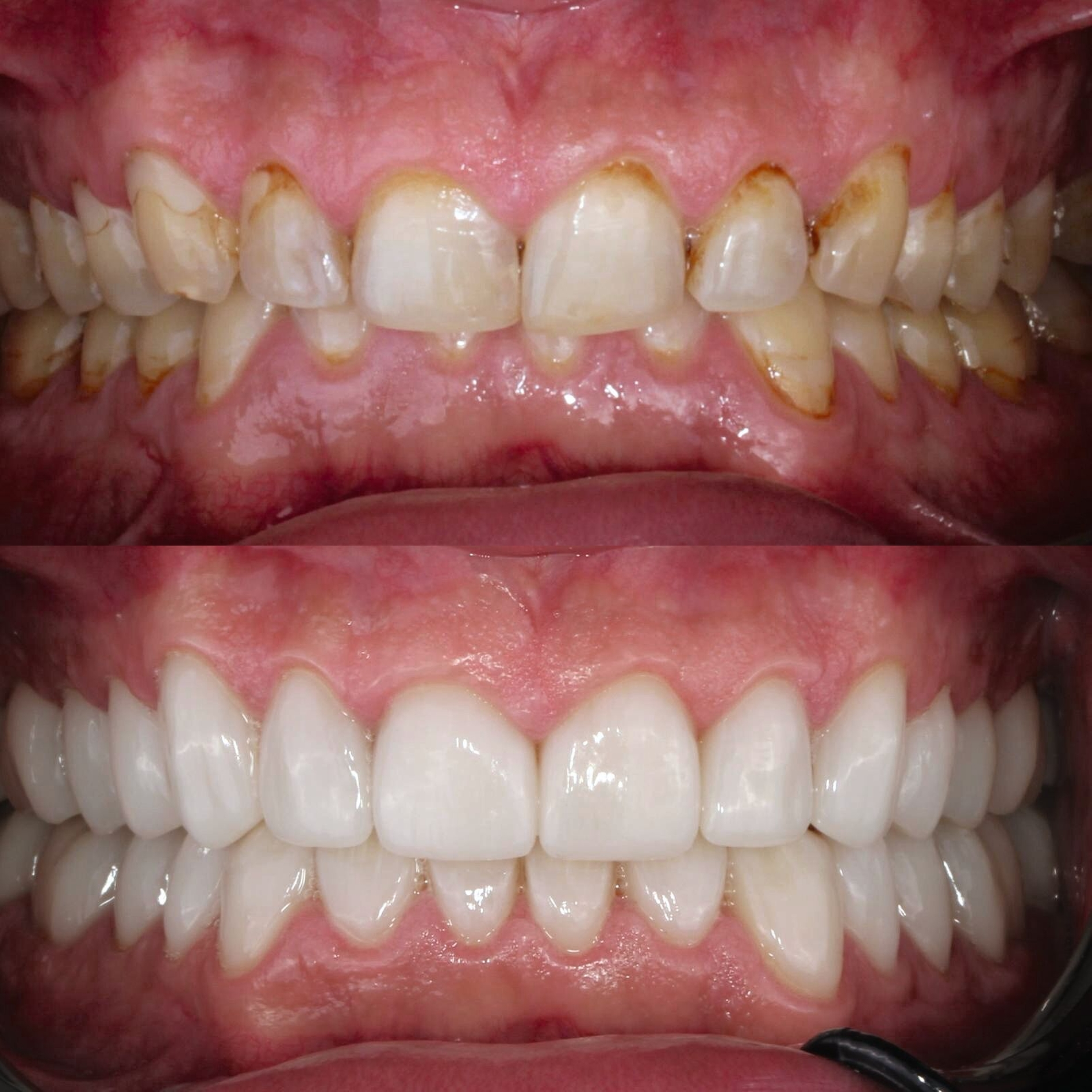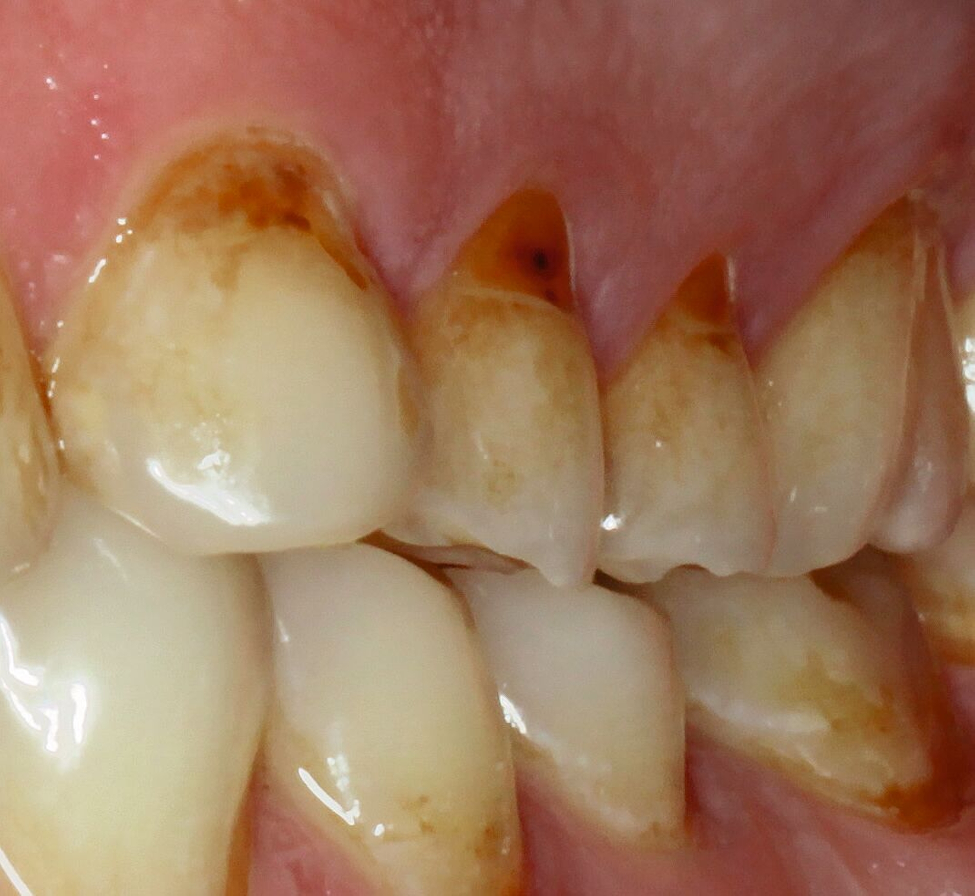Der 26-jährige Patient stellte sich erstmalig im Oktober 2021 mit dem Wunsch nach einer Gesamtrehabilitation des Gebisses vor. Er betreibt Kraftdreikampf, international bekannt unter dem Namen Powerlifting, und nimmt regelmäßig an Wettkämpfen teil. Es handelt sich dabei um eine kraftintensive Sportart, welche der Schwerathletik zugerechnet wird. In den drei Disziplinen Kniebeugen, Bankdrücken und Kreuzheben werden abhängig vom erreichten Maximalgewicht Punkte vergeben und zusammengerechnet. Für den Athleten gehören besonders in Phasen des Muskelaufbaus kurze Essintervalle, gesüßte Workout-Booster, Proteinshakes sowie Säfte und Energydrinks zum Alltag.