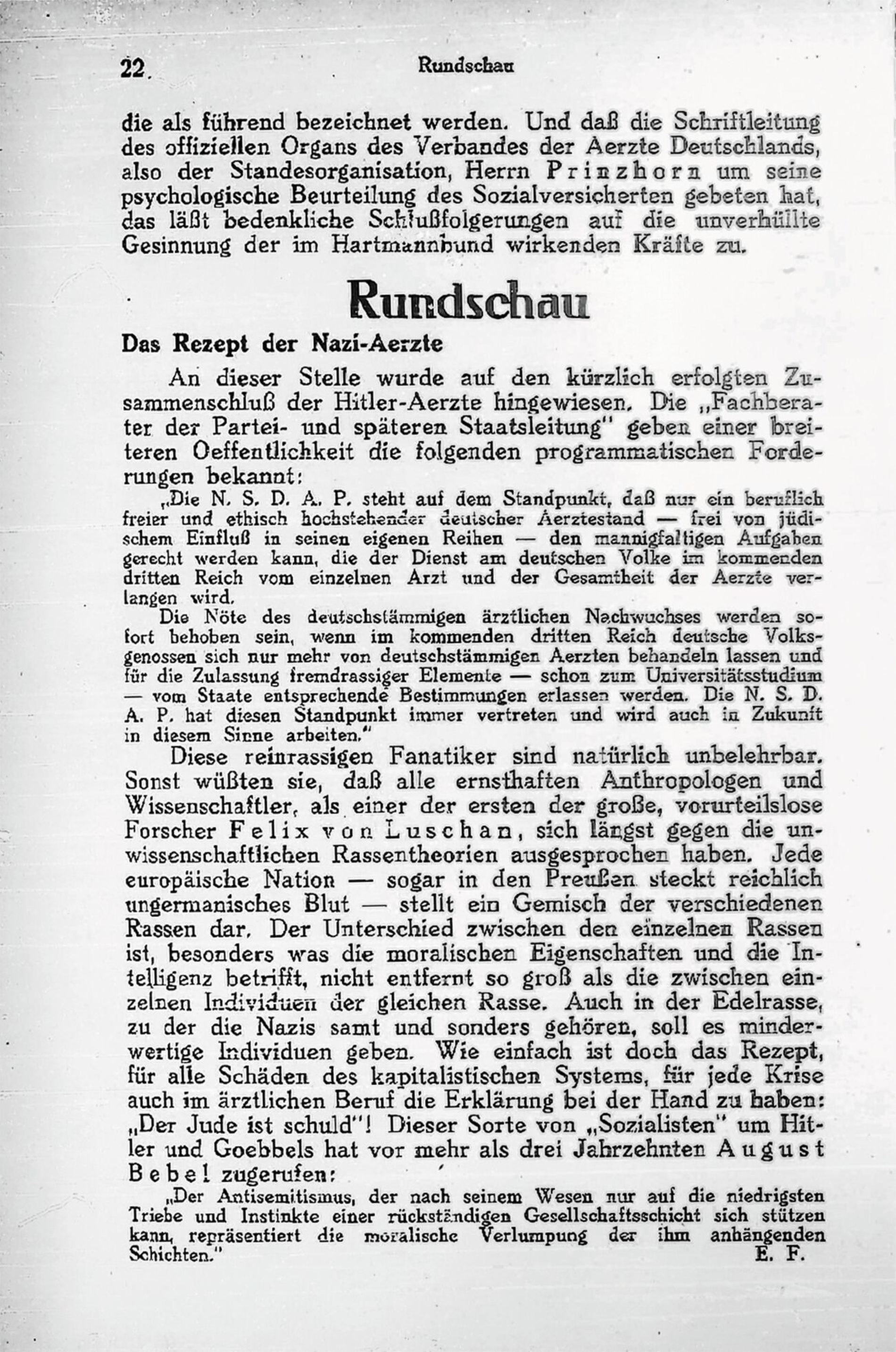 Fabian (1931): Ewald Fabian, Das Rezept der Nazi-Ärzte, Sozialist. Arzt 7/1 (1931), 22