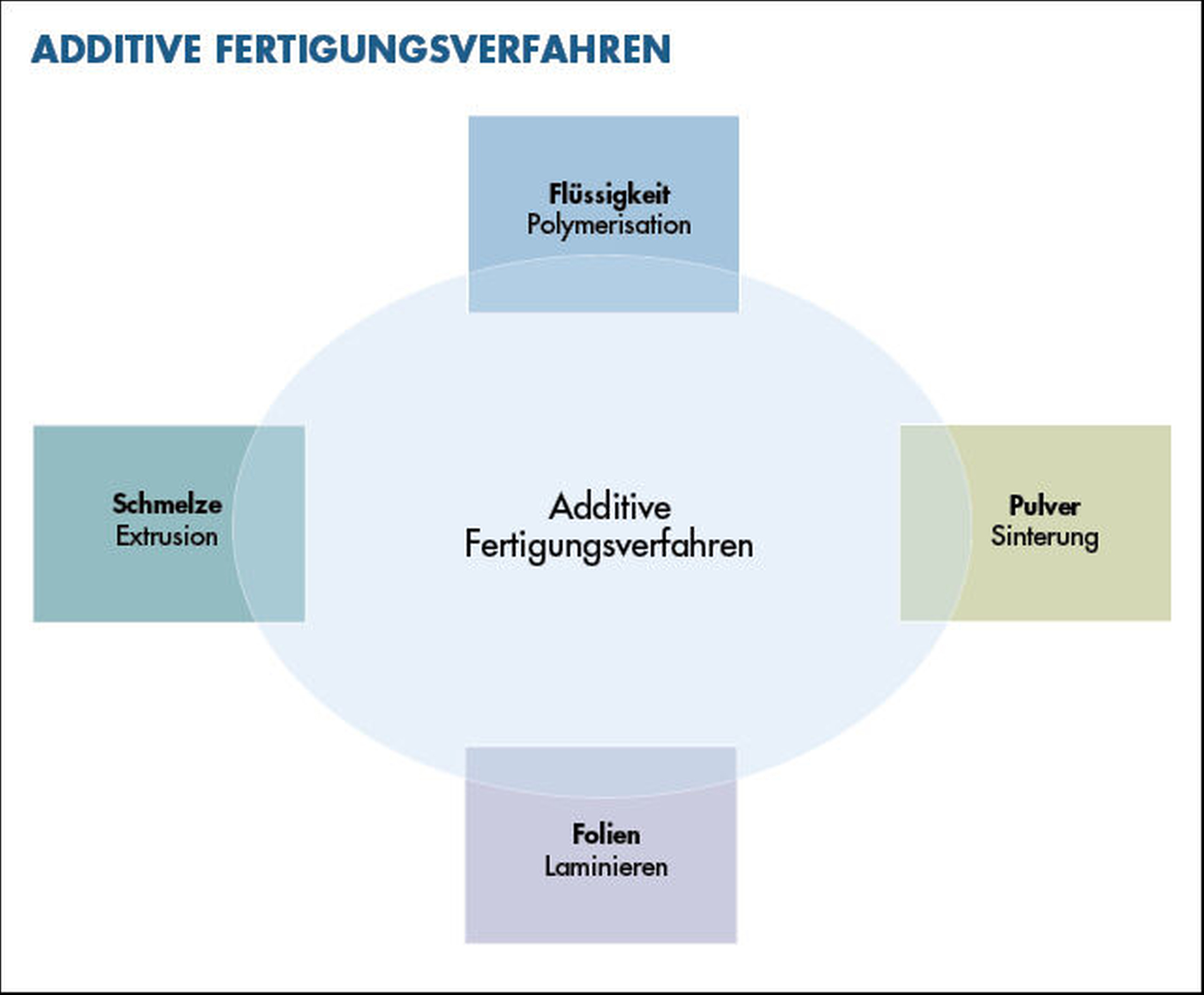 Die für die Zahnmedizin aktuellen additiven Verfahren sind in der gemeinsamen Norm der ASTM mit der ISO (International Standard Organization) ISO/ATSM 52900:2018 aufgeführt [ISO/ATSM, 2018]. Wichtige Aspekte der additiven Fertigung sind ständige Qualitätskontrollen (zum Beispiel Druck von Referenzobjekten) und regelmäßige Gefährdungsbeurteilungen (zum Beispiel der maximalen Arbeitsplatzkonzentration (MAK) von Monomeren oder der Brandgefahr bei der Verwendung von Isopropanol).