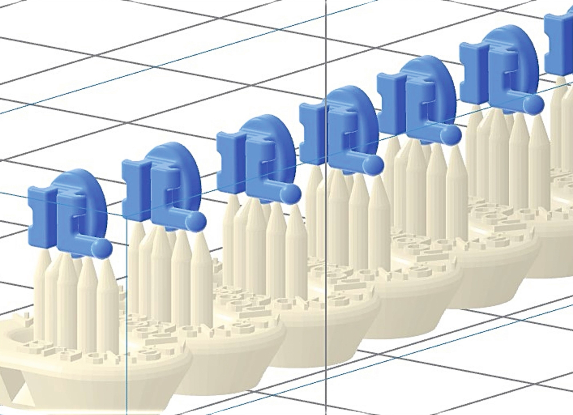 Als Alternative zu Alignern können auch Brackets mittlerweile im 3-D-Druckverfahren hergestellt werden [Sha et al., 2018; Sha et al., 2019; Bauer et al., 2023] (Abbildungen 2a und 2b). Neben der Nutzung des Angebots kommerzieller Anbieter (beispielsweise Lightforce Company) besteht dabei die Möglichkeit der Herstellung im praxisinternen 3-D-Drucker. Zum Einsatz eignen sich unter anderem Keramik-gefüllte 3-D-Druckkunststoffe der Biokompatibilitätsklasse IIa, die für einen langfristigen intraoralen Einsatz zertifiziert sind (zum Beispiel Permanent Crown Resin, Formlabs) [Papageorgiou et al., 2022; Bauer et al., 2023; Hodecker et al., 2023; Panayi, 2023].