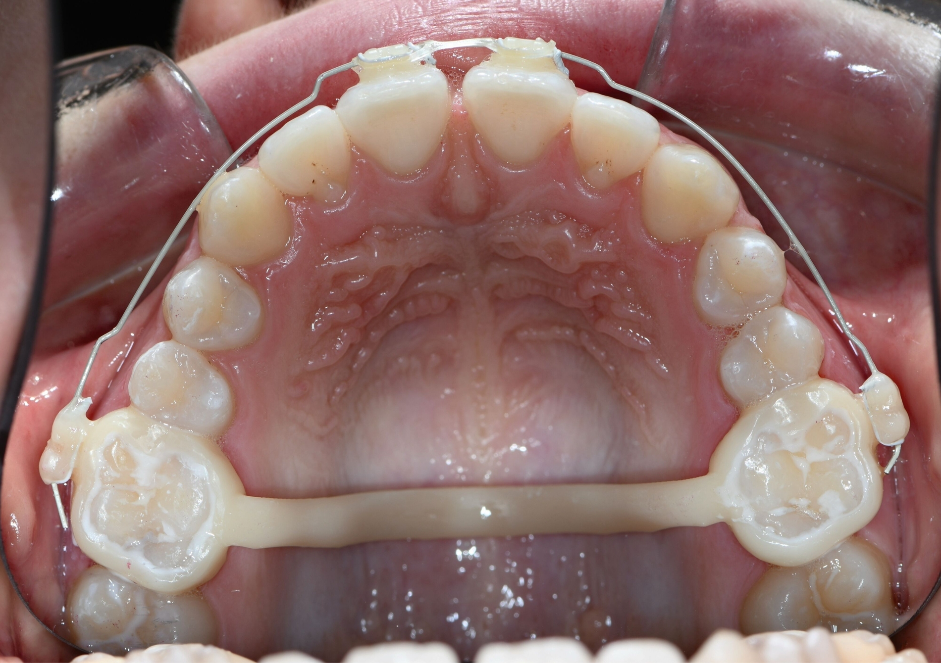 Auch für die Herstellung von Retainern sind bereits vielfältige 3-D-gedruckte Lösungen vorgestellt worden. Der Nachteil liegt hier jedoch hauptsächlich in der Verwendung von steifen Materialien. Im Gegensatz zu flexiblen konventionellen handgebogenen Retainern werden die auftretenden Kaufkräfte in höherer Weise direkt auf den Adhäsivverbund weitergeleitet, was die Gefahr eines Klebeversagens erhöht [Hetzler et al., 2024].