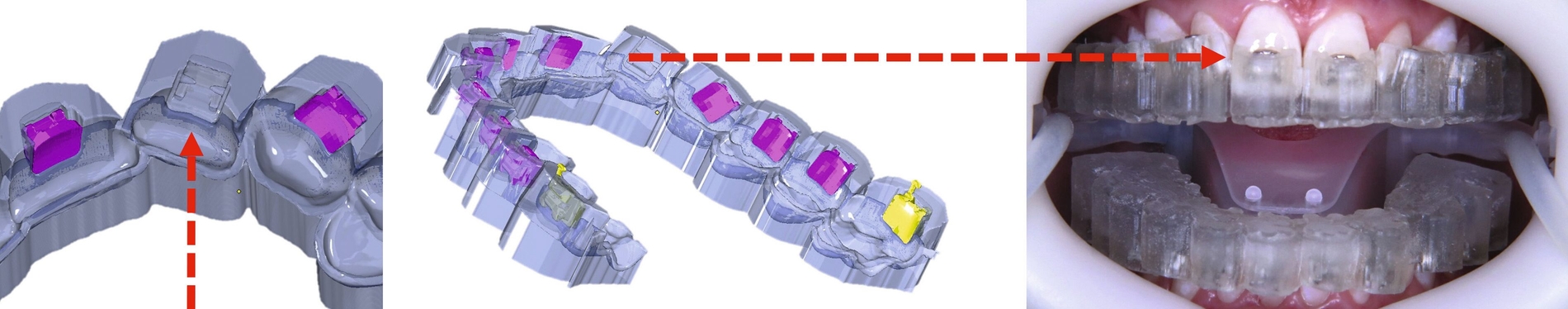 Unter den digital gefertigten kieferorthopädischen Apparaturen sind Aligner wohl das bekannteste Beispiel [Ercoli et al., 2014, Robertson et al., 2020]. Die Herstellung von Alignern selbst basiert(e) jedoch auf einer manuellen Fertigung anhand 3-D-gedruckter Modelle und stellt(e) somit bisher eher eine partiell automatisierte Fertigung dar. Die neuesten Entwicklungen erlauben mittlerweile eine Fertigung im direkten 3-D-Druckverfahren [Tartaglia et al., 2021], so dass mühsame, zeitaufwendige Zwischenschritte der manuellen Fertigung entfallen (Abbildung 1a). Weiter profitieren die Patienten von individuelleren Fertigungsmöglichkeiten, da durch die Umsetzung im 3-D-Druck zusätzliche Elemente einfacher und stabiler in den Aligner inkorporiert werden können (Abbildung 1b).