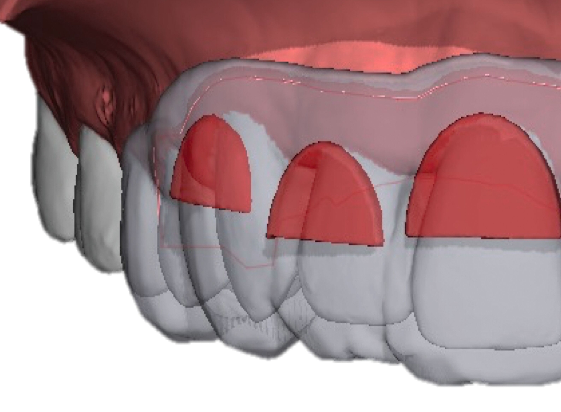 Weitere Beispiele beinhalten hochkomplexe Behandlungsfälle multipler Zahnanlagen. Während die Extraktionsentscheidung und Absprache mit dem/der chirurgisch tätigen Kollegen/in allein auf Basis der Bildgebung oft limitiert ist, erleichtern 3-D-gedruckte Modelle des segmentierten DVTs sowohl die Entscheidung als auch die Absprache und ermöglichen darüber hinaus eine genauere Planung des chirurgischen Vorgehens (Abbildung 6c). Gleiches betrifft parodontalchirurgische Eingriffe, in denen sogenannte „Cutting guides“ eine zuvor digital geplante Gingivektomie ermöglichen (Abbildung 6d). Im Bereich der Freilegung verlagerter Zähne können Schablonen dem/die chirurgisch tätigen Kollegen/in sowohl die Freilegung des Zahnes (Abbildung 6e) als auch die Anbringung eines Attachments (Abbildung 6f) erleichtern und dabei die kieferorthopädisch gewünschte Attachmentposition passgenau übertragen.