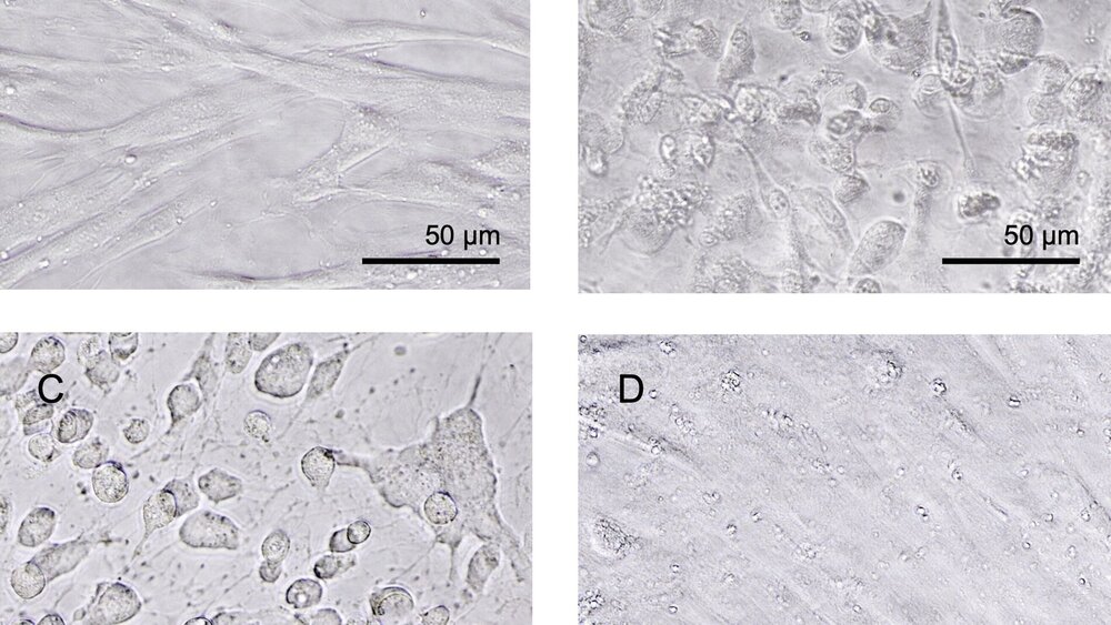 Hinsichtlich einer Zelltoxizität zeigen viele verschiedene In-vitro-Studien, dass aus Kompositen und Adhäsiven freigesetzte Substanzen eine zellschädigende Wirkung haben. Durch eluierte Inhaltsstoffe werden Einschränkungen des Zellmetabolismus, Zerstörung von Zellmembranen und morphologische Veränderungen von Zellen beobachtet [Ohlsson et al., 2024] (Abbildung 1). In geringeren Konzentrationen können mutagene und genotoxische Veränderungen auftreten. Die Ursache dafür ist unter anderem eine erhöhte intrazelluläre Konzentration freier Sauerstoffradikale, die wiederum DNA-Schäden verursachen [Demirci et al., 2008; Krifka et al., 2013].