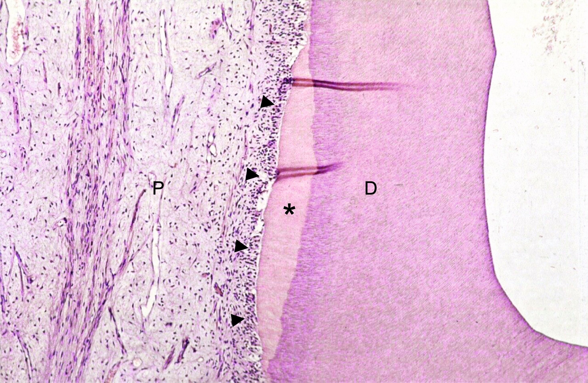 Untersuchungen an Versuchstieren oder an menschlichen Zähnen unterstützen teilweise die In-vitro-Ergebnisse. Während einige Autoren keine Pulpaschädigung fanden, wurde in anderen Untersuchungen über ausgeprägte Pulpaschädigungen nach Säureätzung und Applikation von Dentinadhäsiven berichtet [Gwinnett und Tay, 1998; Hebling et al., 1999]. Pulpaschäden treten oft ohne klinische Symptome auf, können aber histologisch nachgewiesen werden [Shen et al., 2022] (Abbildung 2).
