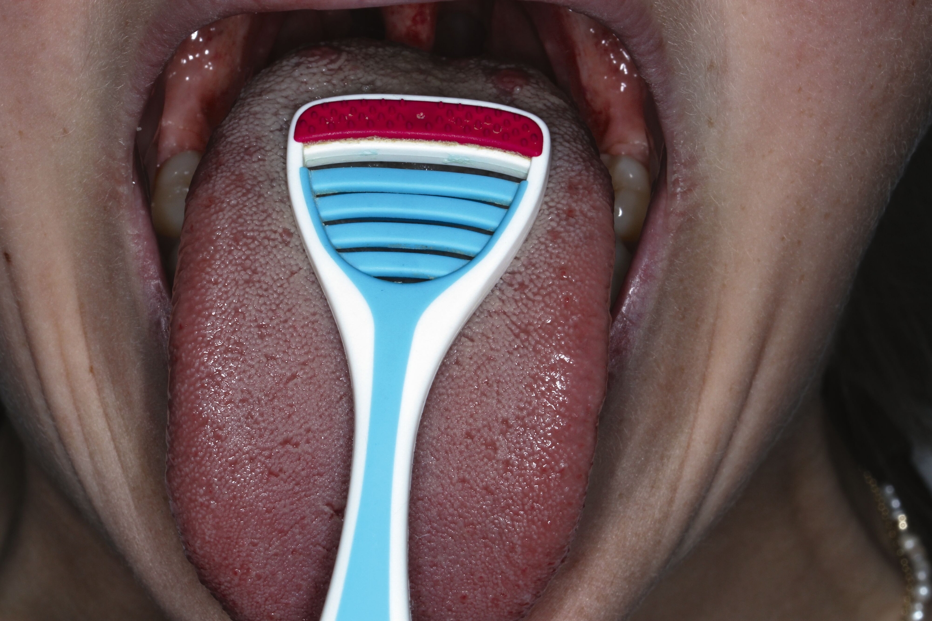 Die Behandlung der Halitosis sollte sich danach richten, deren Ursachen zu beheben. Zunächst sollte die häusliche Mundhygiene überprüft werden. Laut der deutschen Mundgesundheitsstudie kennt nur etwa jeder dritte Erwachsene die Empfehlungen zur Zahnpflege und gibt ein gutes Putzverhalten an [DMS V, 2016]. Sinnvollerweise sollte als Erstes die Mundhygiene kontrolliert und trainiert werden. Zu einer optimalen Mundhygiene zählt auch die Interdentalhygiene und wenn notwendig die Zungenreinigung. Es sollte hierbei kein scharfkantiger Zungenschaber, sondern ein Zungenreiniger benutzt werden (Abbildung 6). Eine massive mechanische Reinigung der Zunge könnte eine Schädigung der Zungenzellen verursachen [Amano et al., 2007]. Möglicherweise könnte die Zungenreinigung mit Zungenpaste effektiver sein [Hoshi et al., 2002].