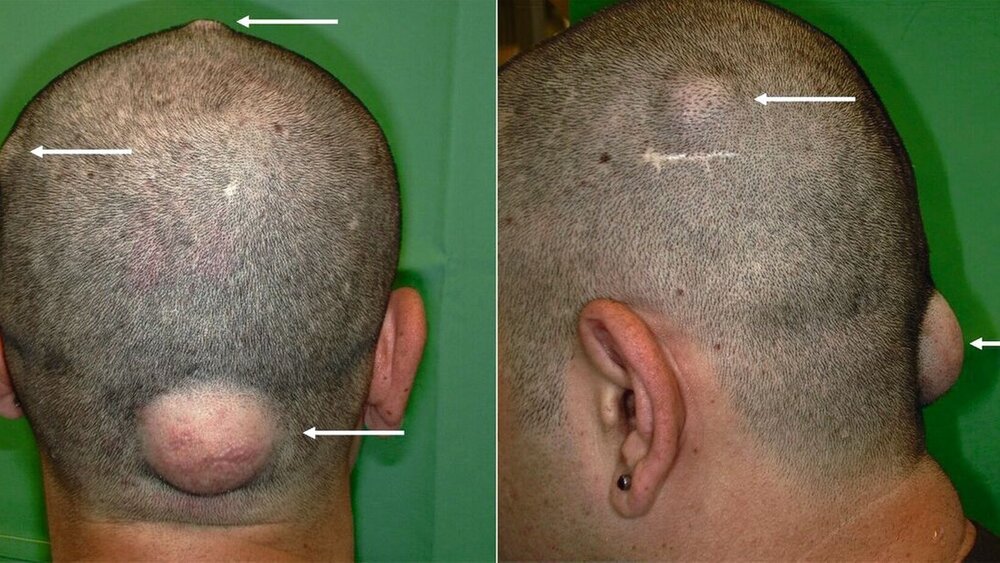 Im April 2024 stellte sich ein 39-jähriger Patient mit einer ausgedehnten schmerzhaften Schwellung des Hinterkopfs in der Notfallambulanz der Mund-, Kiefer- und Gesichtschirurgie der Universitätsmedizin Mainz vor. Anamnestisch berichtete er von mehreren Schwellungen im Bereich des Kopfes, die schon seit mehreren Monaten bestünden, ihm aber keine Probleme bereiteten. Doch insbesondere die okzipitale Raumforderung sei nun in den letzten Wochen deutlich größer geworden und druckschmerzhaft. Die weitere Anamnese des Patienten war unauffällig.