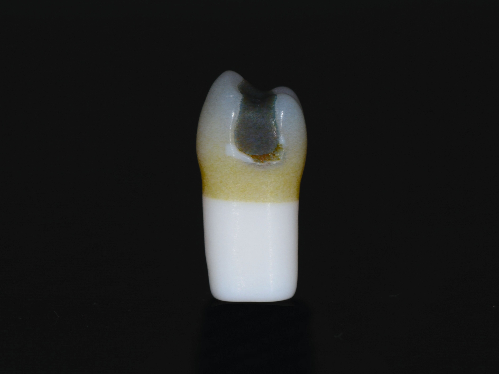 Teilweise wurden die Übungszähne sogar aufwendig aus verschiedenen Teilen gedruckt, bemalt, mit anderen Materialien gefüllt und im letzten Schritt zusammengefügt [Hohne und Schmitter, 2019; Hohne et al., 2019; Panpisut et al., 2022; Sonkaya und Kurklu, 2023]. Neben diesem zusätzlichen Aufwand dürfen die verschiedenen Kompartimente keine Unterschnitte aufweisen, und es kam zu Klebe- beziehungsweise Verbundproblemen [Sonkaya und Kurklu, 2023].