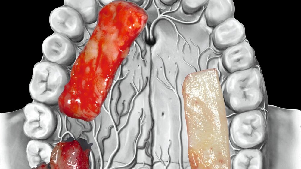 Bindegewebstransplantate (BGT) sind auf Basis aller systematischen Übersichtsarbeiten der vergangenen Jahre der Goldstandard zur Deckung von gingivalen Rezessionen um Zähne [Chambrone et al., 2022], aber auch Mittel der Wahl zur Korrektur von Gewebsdefekten um Implantate und überall dort, wo das primäre Ziel eine Volumenvermehrung ist [Tavelli et al., 2021]. So eindeutig die Literatur mit Blick auf den Vergleich mit anderen Optionen wie dermalen Matrizes oder den später noch beschriebenen Biologika ist, so wenige Daten gibt es zum Vergleich verschiedener Spenderregionen innerhalb der Mundhöhle, wobei die Entnahmestelle und -technik einen signifikanten Einfluss auf die Struktur des Transplantats hat.