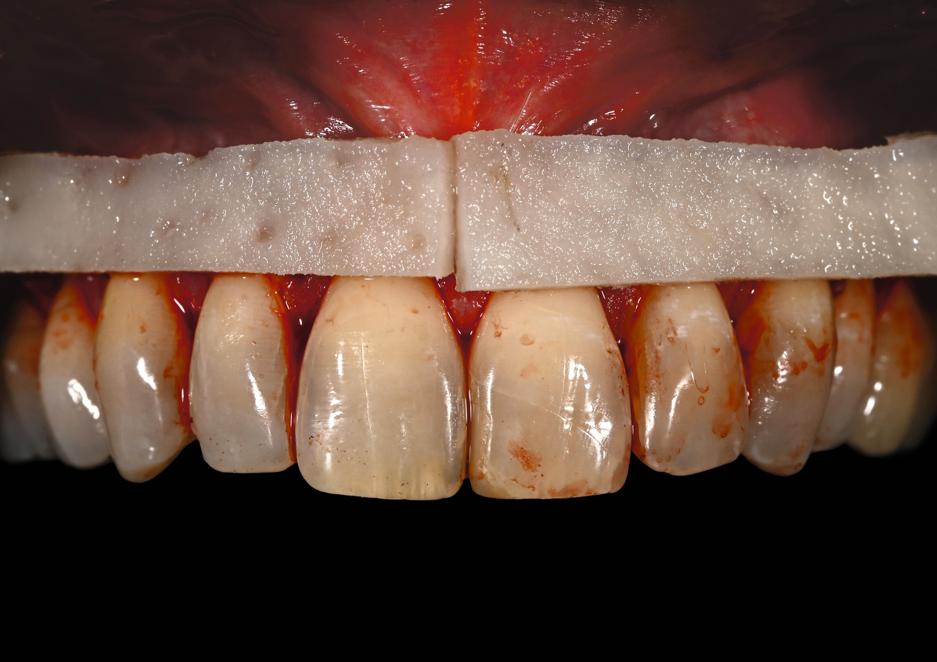 Das Weichgewebsmanagement oder -augmentationen sowohl in der Parodontologie als auch in der dentalen Implantologie werden, wie oben beschrieben, meist mit autogenem Gewebe vom Gaumen durchgeführt. Um die Morbidität der Patienten und das intra-/postoperative Komplikationsrisiko zu reduzieren, kann jedoch auch – wie im Bereich der Knochenaugmentation – auf xenogene Alternativen meist porcinen und dermalen Ursprungs zurückgegriffen werden. Vorteilhaft ist die unlimitierte Verfügbarkeit in Größe und Dicke. Diese Materialien zeigen entweder eine eher schwammartige oder eine kompakte Struktur und sind entweder nativ oder zusätzlich kreuzvernetzt. Somit zeigen die Materialien auch eine unterschiedliche Volumenstabilität mit Blick auf die Druckresistenz, aber auch auf die Resorptionskinetik beziehungsweise die Möglichkeit zur schnellen Besiedelung mit körpereigenen Zellen [Fischer et al., 2014]. Während der Einsatz als freies Schleimhauttransplantat aufgrund der fehlenden genetischen Information zur Keratinisierung nur eingeschränkt oder in Kombination mit autogenem Gewebe möglich ist, ist die gedeckte Verwendung von Kollagenmatrizes als Bindegewebsersatz abhängig von der Defektmorphologie immer besser dokumentiert und zu empfehlen.