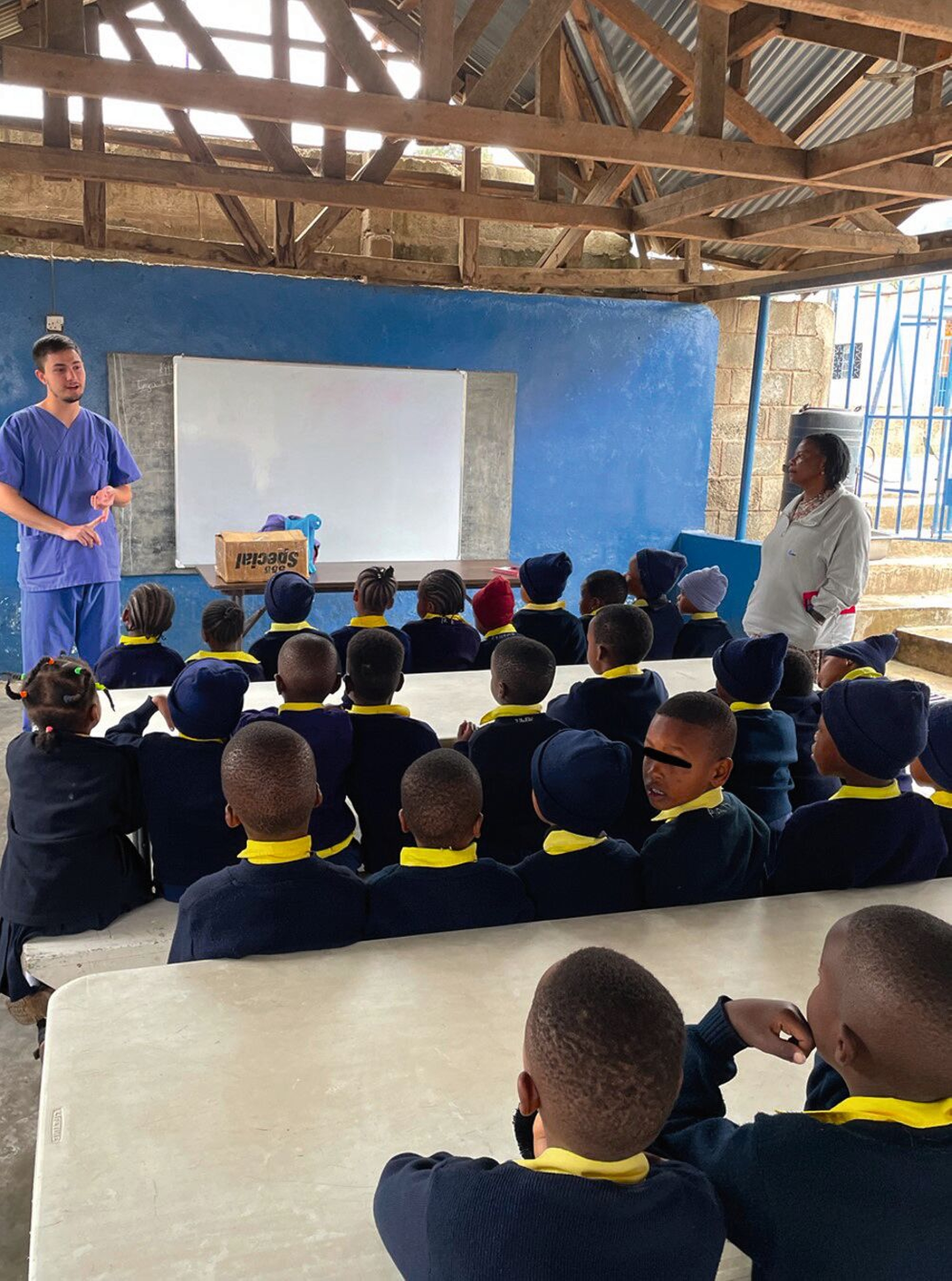 Meistens wurde das Auto mit Fahrer von der Regierung gestellt, für das Benzin mussten wir allerdings selbst aufkommen. Der Benzinpreis lag immer bei über einem Euro, wodurch über die Zeit einige Kosten für uns zusammenkamen. Durchschnittlich saßen wir etwa drei Stunden pro Tag im Auto für die Hin- und Rückfahrt zu den Einsatzorten. In der letzten Woche haben wir einen Tag Präventionsarbeit in einer Grundschule mit knapp 300 Kindern im Alter von vier bis 13 Jahren geleistet.