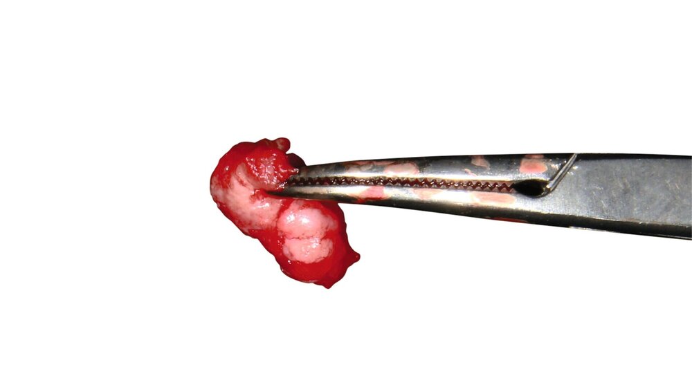 Bei der chirurgischen Entfernung stellen das hohe Blutungsrisiko und die anspruchsvolle plastische Deckung – insbesondere bei Vorliegen eines Gewebedefekts – durch die unbewegliche Gaumenschleimhaut eine besondere Herausforderung dar.