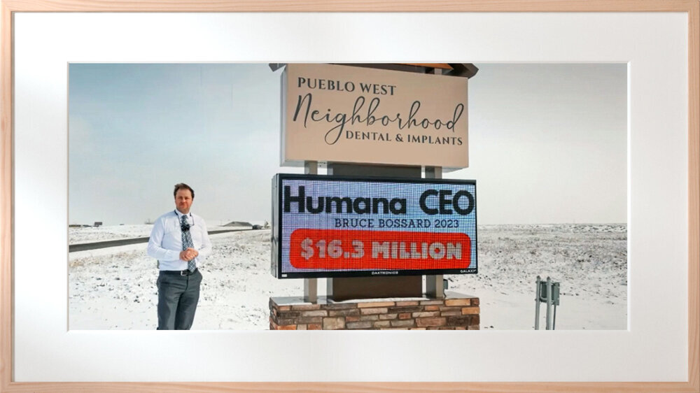Dann aber lehnte Humana plötzlich die Erstattung ab, Begründung: Für die Reinigung gebe es „keine Beweise“. Ross wurde sauer, er entschied, sich zu wehren, und veröffentlichte die Fotos, die Humana nicht als Beweise gelten lassen wollte, auf seiner praxiseigenen LCD-Werbetafel am Straßenrand von Highway 50 – im Wechsel mit dem Namen des Humana-CEO Bruce Broussard und dessen Jahresgehalt von 16,3 Millionen US-Dollar. „Ich will das nicht kritisieren, aber es ist so ungeheuerlich falsch, diese Forderung zu bestreiten“, argumentierte Ross. „PZRs sind sehr kleine Posten, die zwischen 80 und 200 Dollar liegen, je nach Umfang der durchgeführten Arbeiten.“