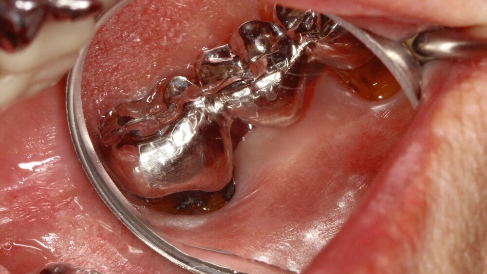 Der Wirkungsmechanismus ist bislang nicht aufgeklärt. Die wesentlichen Verbindungen in SDF-behandelten Läsionen sind Silberphosphat, Silberoxid und Silbersulfid. Silberphosphat ist ein guter Photokatalysator [Yi et al., 2010], der spezifische chemische Reaktionen mit oder zwischen den verschiedenen beteiligten Verbindungen und Zahnstrukturen induzieren oder aber die auch ohne Licht eintretenden Reaktionen einfach beschleunigen könnte. Es wird vermutet, dass beispielsweise metallische Silbernanopartikel entstehen könnten [Li et al., 2019]. Abbildung 3 zeigt bräunliche Verfärbungen der Schleimhaut nach Lichteinwirkung.