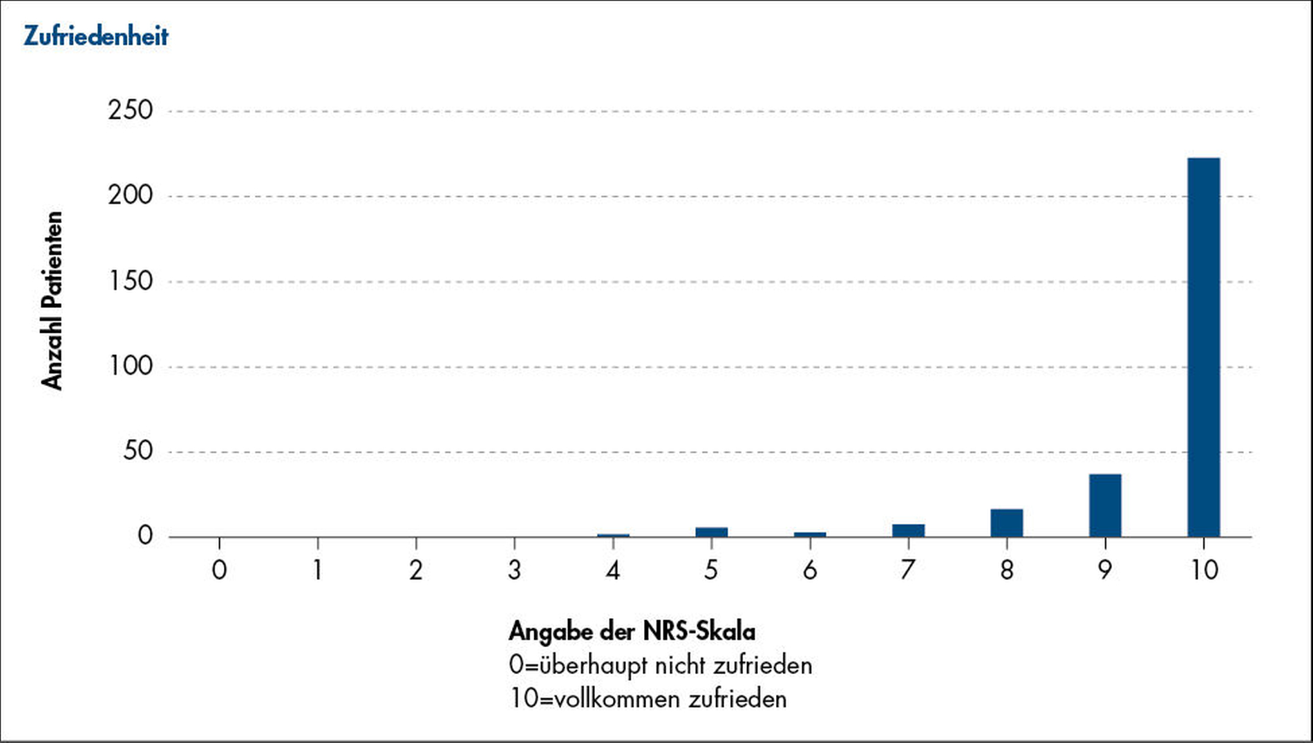 43 Prozent der Studienteilnehmer empfanden den operativen Eingriff als überhaupt nicht belastend (NRS-Angabe zehn). 5,5 Prozent konnten sich nicht mehr an den Eingriff erinnern, was größtenteils dadurch bedingt war, dass der Eingriff in Narkose oder Sedierung durchgeführt wurde.