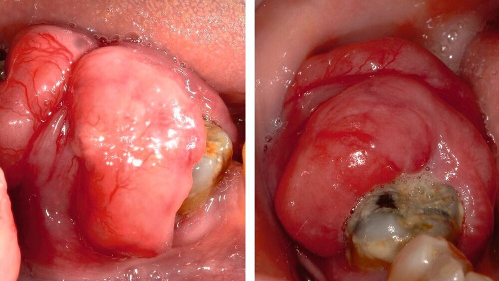 Eine 73-jährige Patientin stellte sich mit einer schmerzlosen Wucherung in Regio 46 bis 48 in der Klinik für Zahn-, Mund- und Kieferkrankheiten der Universitätsmedizin Mainz vor. Die Raumforderung hatte sich innerhalb von zehn Wochen entwickelt. In der überweisenden Zahnarztpraxis wurde der Verdacht auf ein Plattenepithelkarzinom gestellt. Es gab keine Anzeichen für Schmerzen, eine Zahnlockerung oder Blutungen.