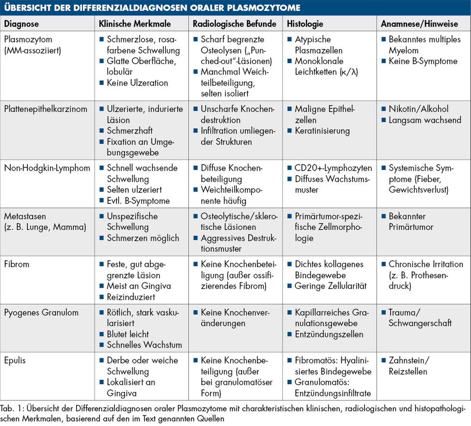 Bei unklaren oralen Befunden – insbesondere bei Patienten mit onkologischer Vorgeschichte – ist eine gründliche Diagnostik notwendig, die frühzeitige Diagnose des multiplen Myeloms kann die Prognose entscheidend verbessern.